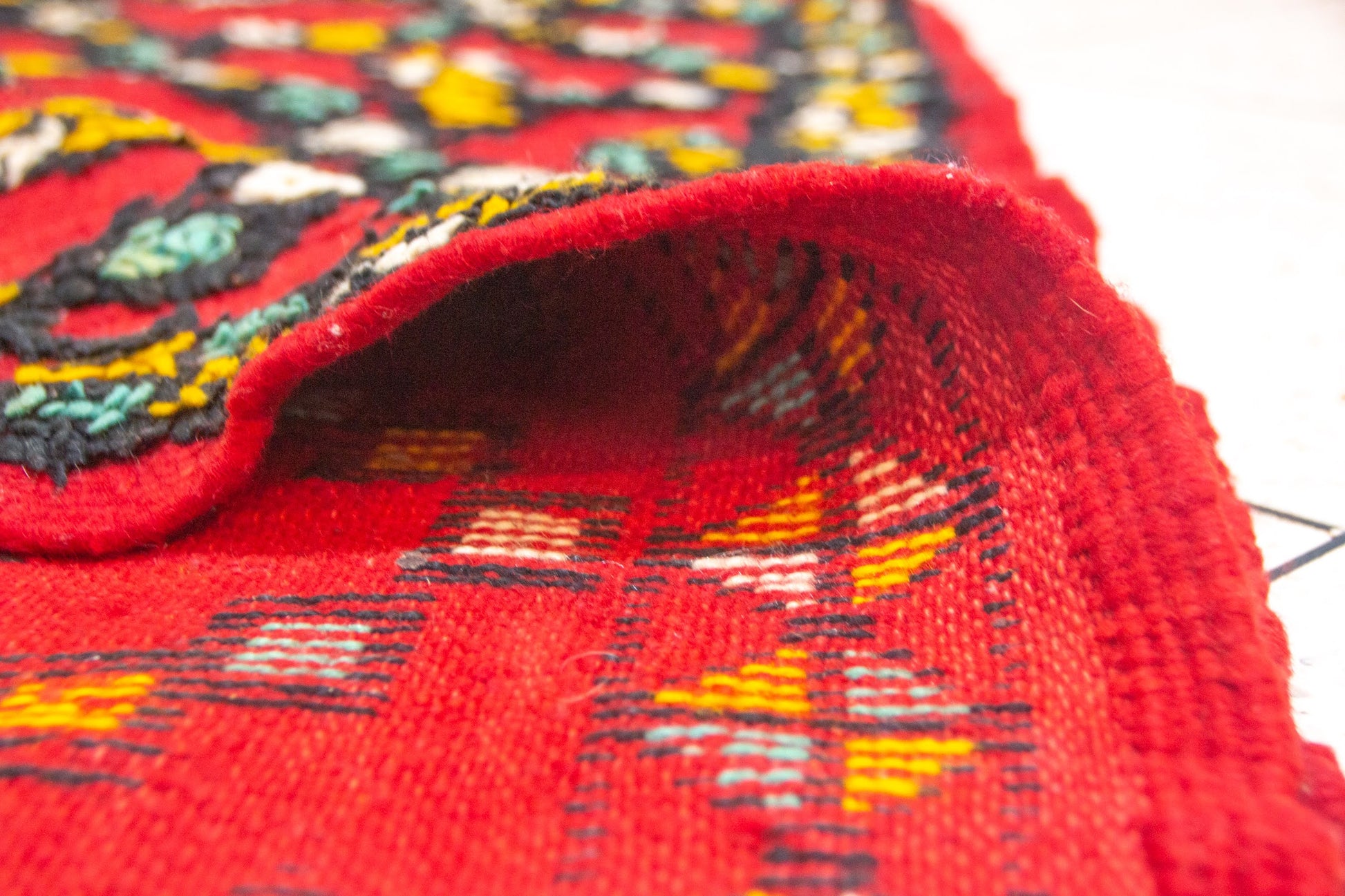 وبر صوف معقود يدويًا بمقبض مرن ومتين. وبر متوسط الحجم ناعم. خطوة مبطنة؛ تؤكد الخدوش الطفيفة والمخالفات الحرفية على حرفية القرية.