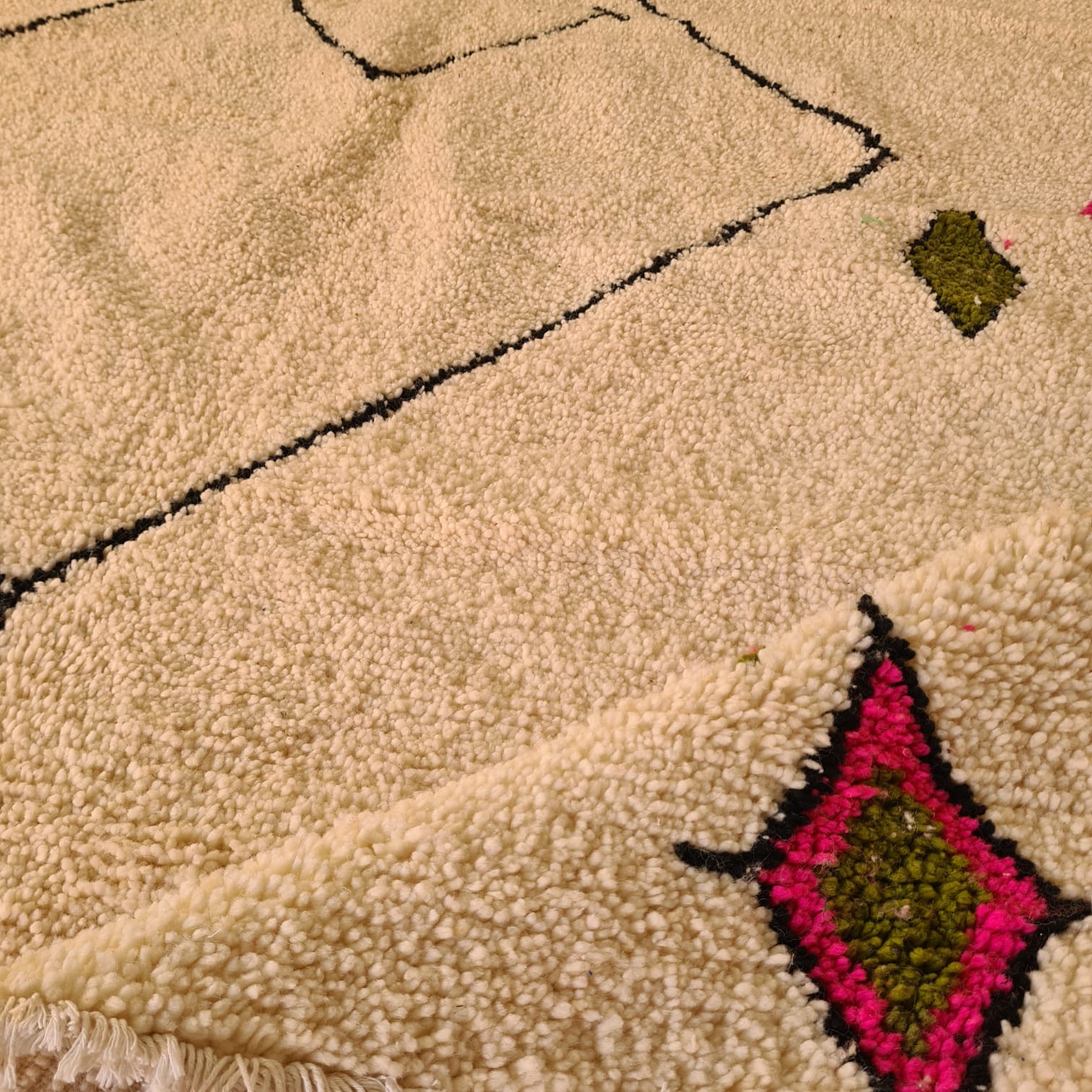 ✧ صوف طبيعي ١٠٠٪ | صنع يدويًا في جبال الأطلس المتوسط | قطعة فريدة من نوعها