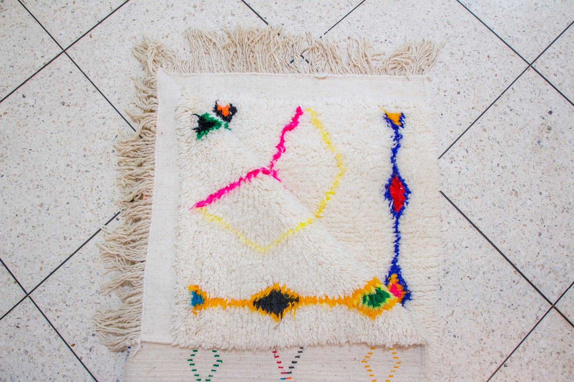 ✧ صوف طبيعي ١٠٠٪ | صنع يدويًا في جبال الأطلس المتوسط | قطعة فريدة من نوعها