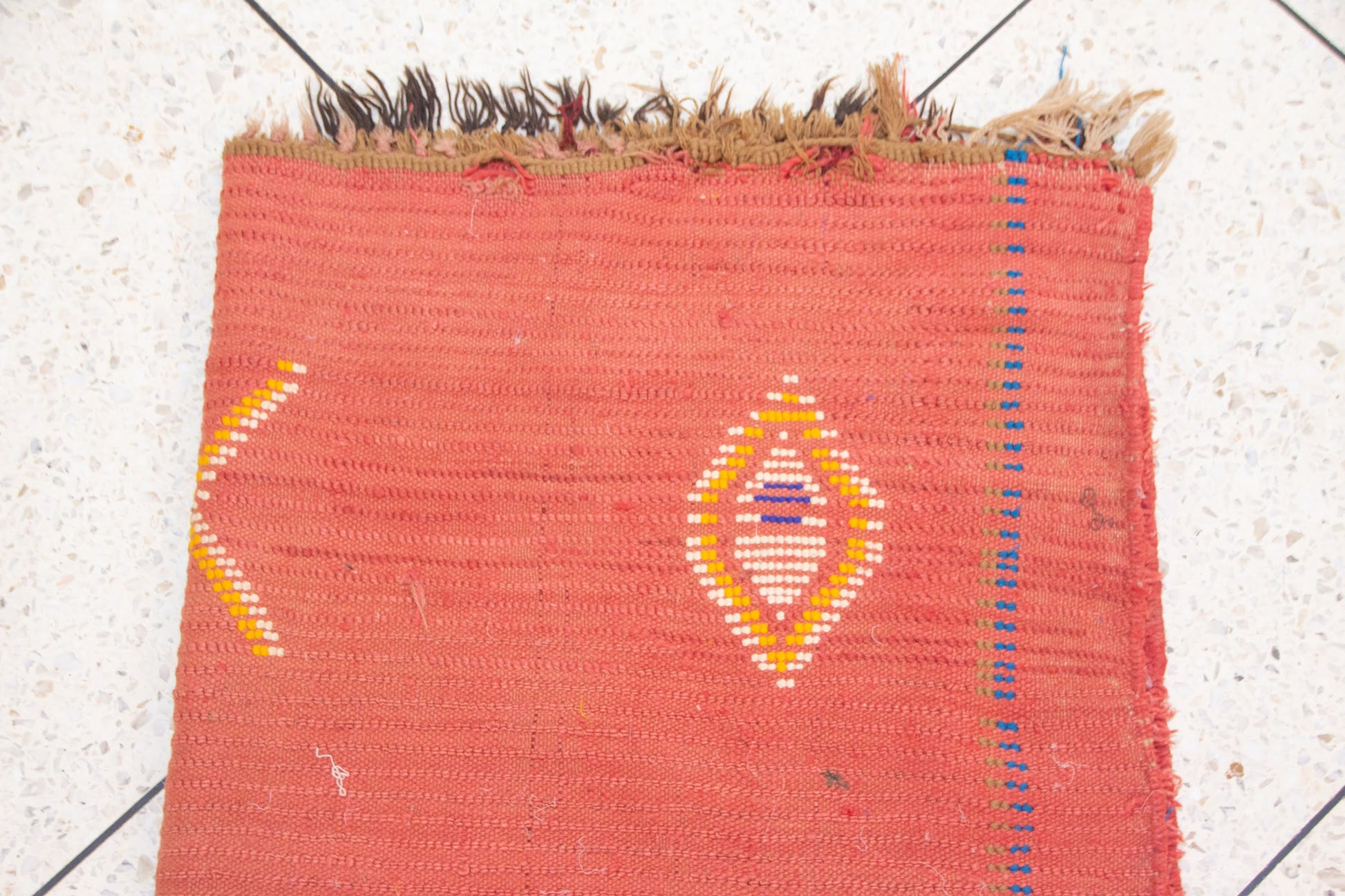 أسلوب أزيلال الكلاسيكي البسيط: حقل أحمر مشبع محاط بشكل هادئ بإطار ضيق من الشريط، مُنقطعة بواسطة تعويذات سحرية - معينات وعلامة X (شظية) - مُصممة في الزعفران والعاج والكوبالت. يُعزز هذا الضبط قوة كل زخرف، وهو مفردات راقية من أطلس المتوسط. مُقَطَّر إلى الأساسيات.