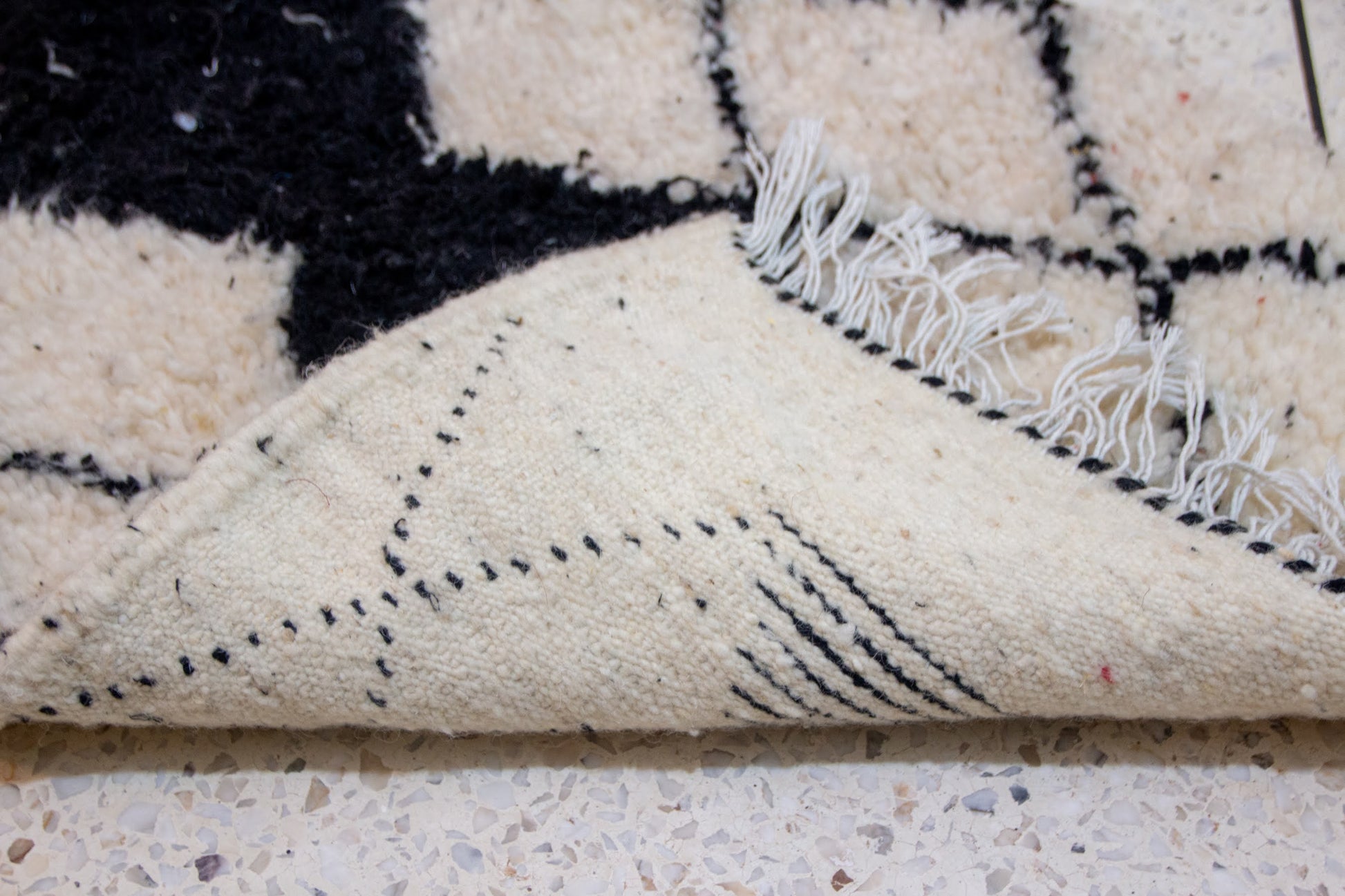 This rug is an original sample from our weaving workshop. Every stitch is handcrafted using undyed or plant-dyed wool sourced from the Atlas. The motifs, symbols, and size can all be reimagined to reflect your own vision.