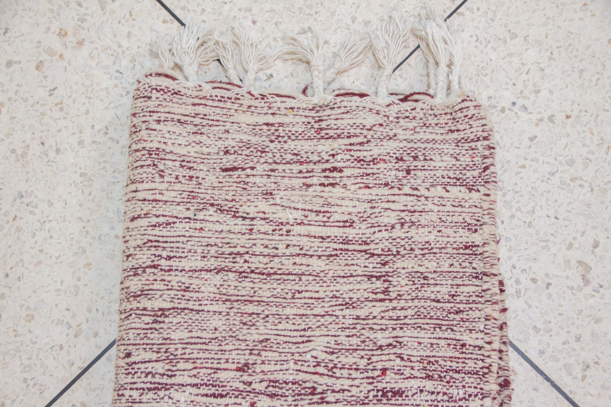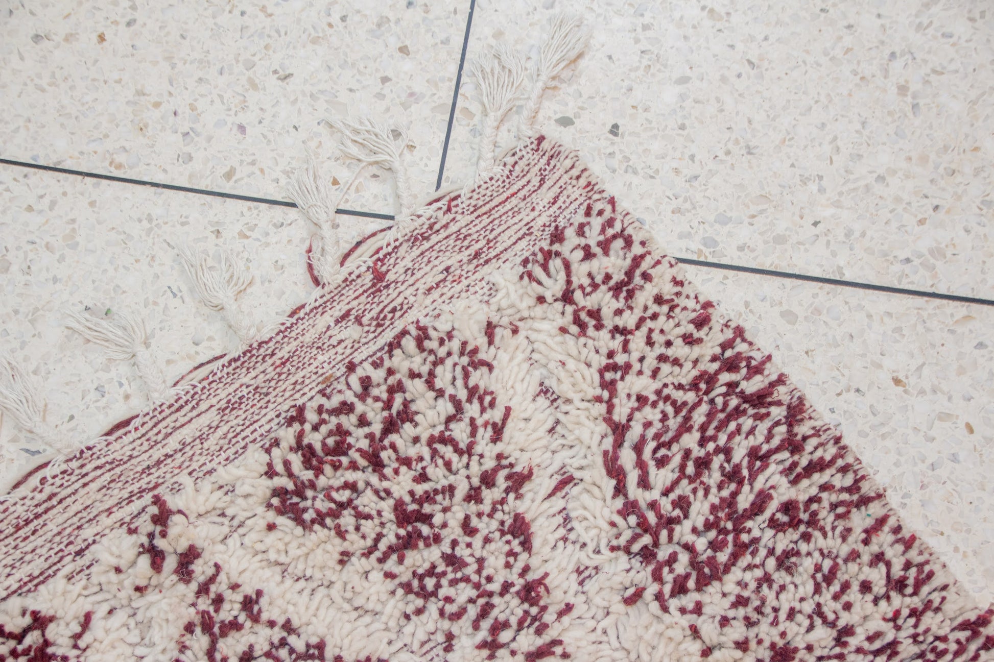 This rug is an original sample from our weaving workshop. Every stitch is handcrafted using undyed or plant-dyed wool sourced from the Atlas. The motifs, symbols, and size can all be reimagined to reflect your own vision.