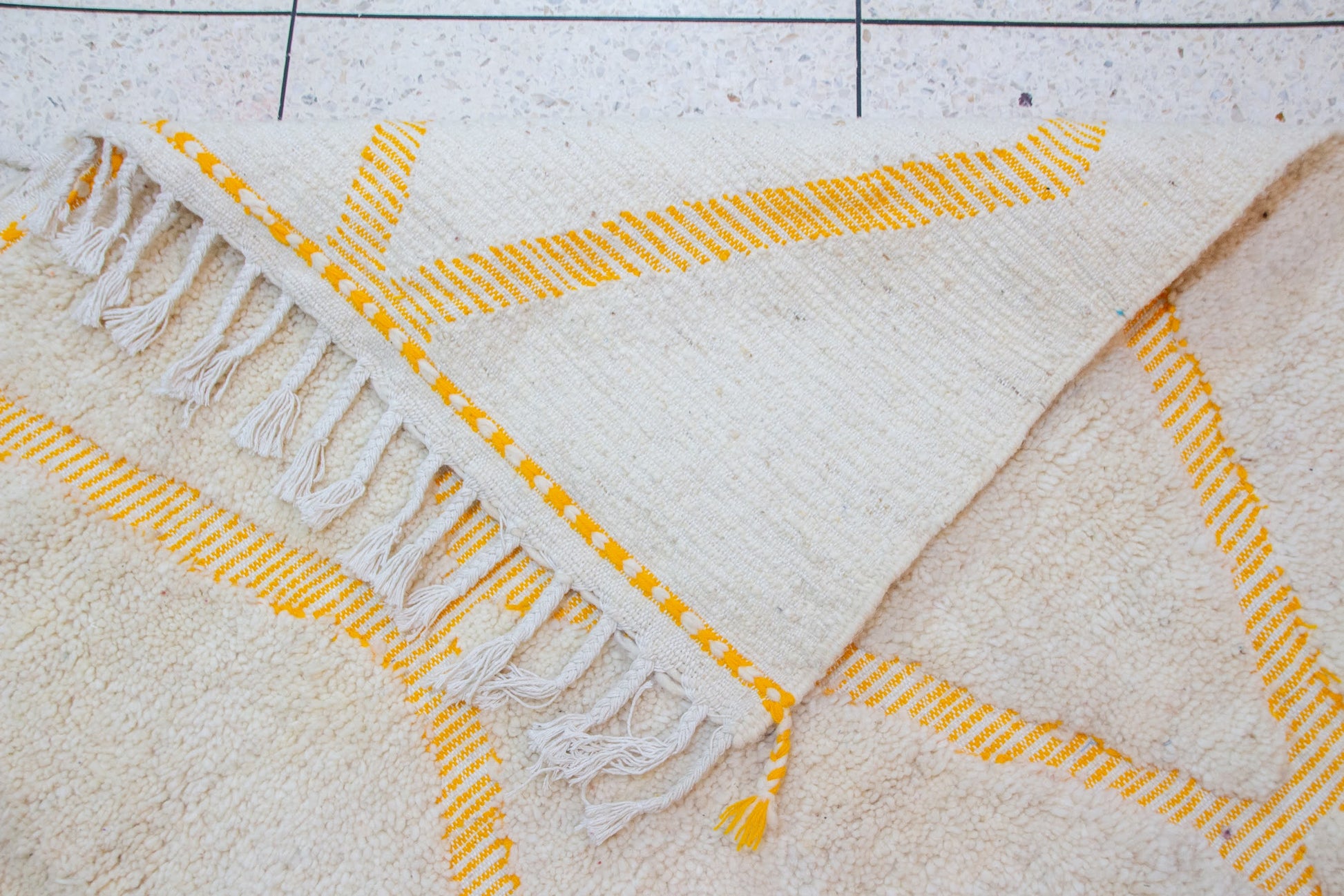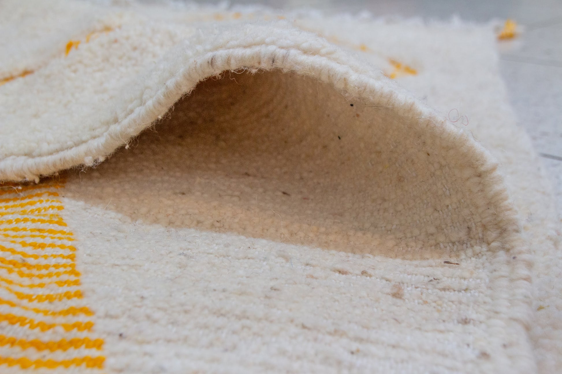 This rug is an original sample from our weaving workshop. Every stitch is handcrafted using undyed or plant-dyed wool sourced from the Atlas. The motifs, symbols, and size can all be reimagined to reflect your own vision.