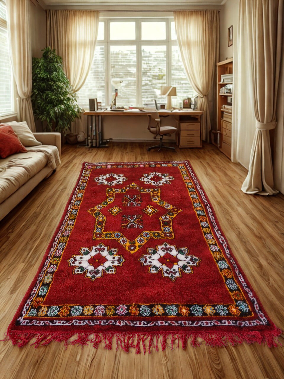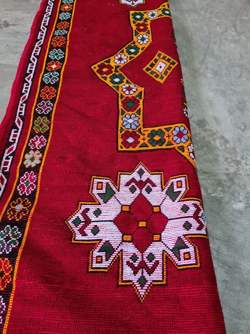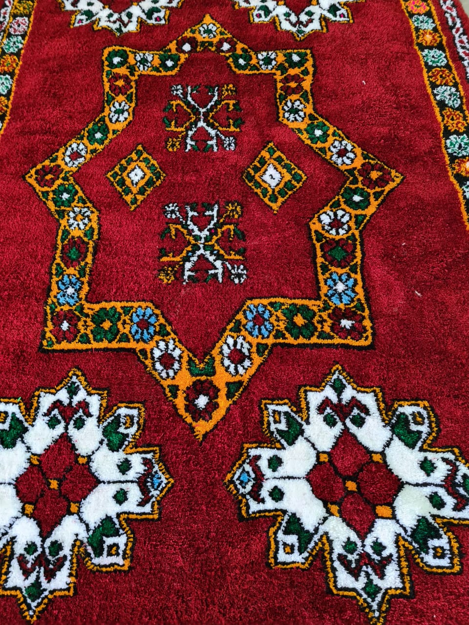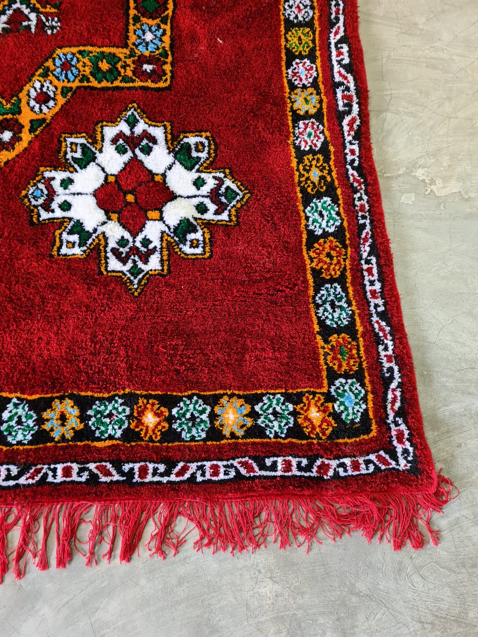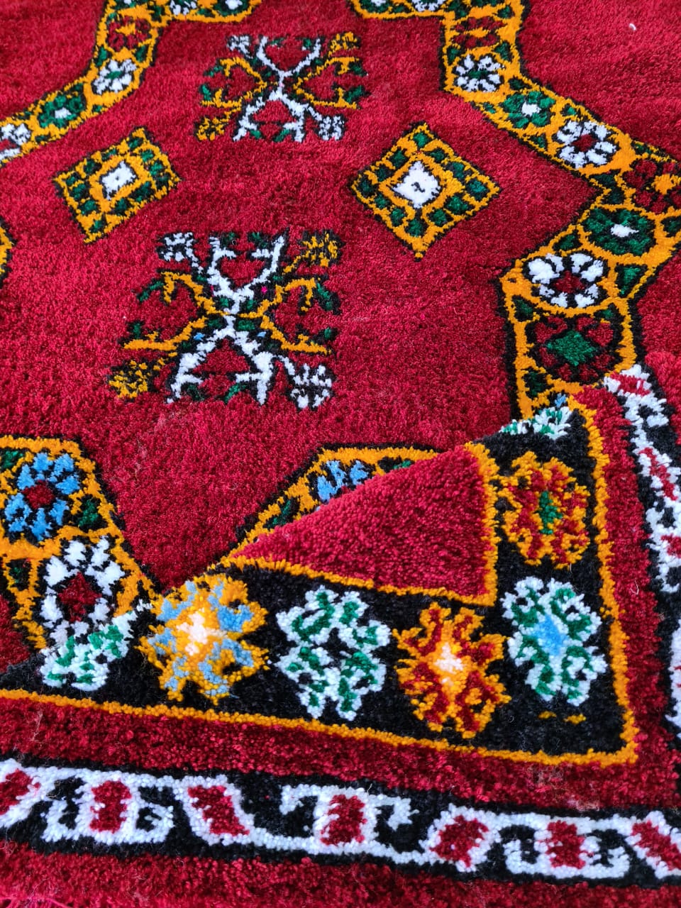 ✧ صوف أكريليك | أحمر احتفالي لامع | حقل رمزي أمازيغي | منسوج يدويًا في آيت زين