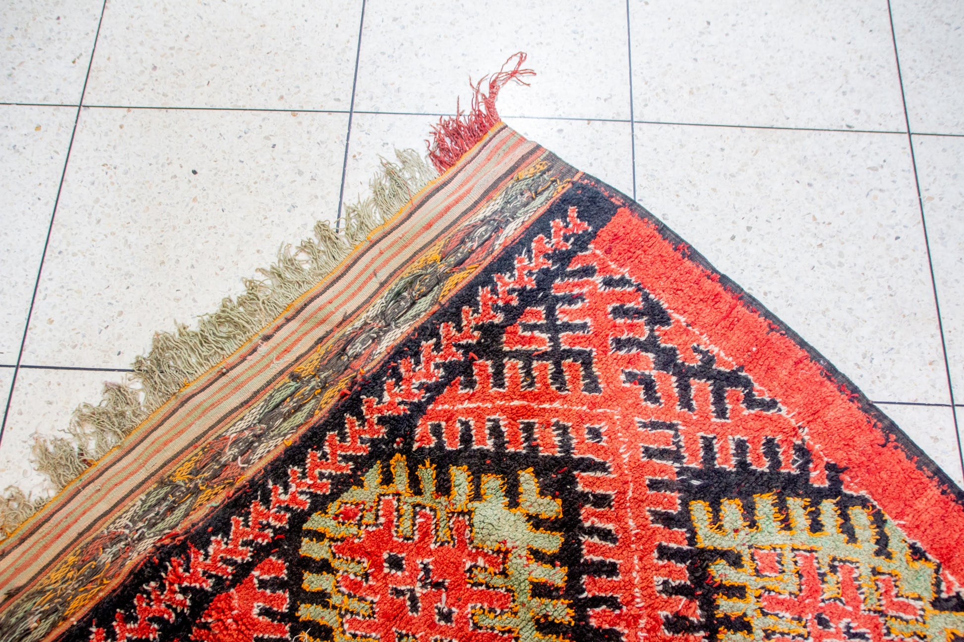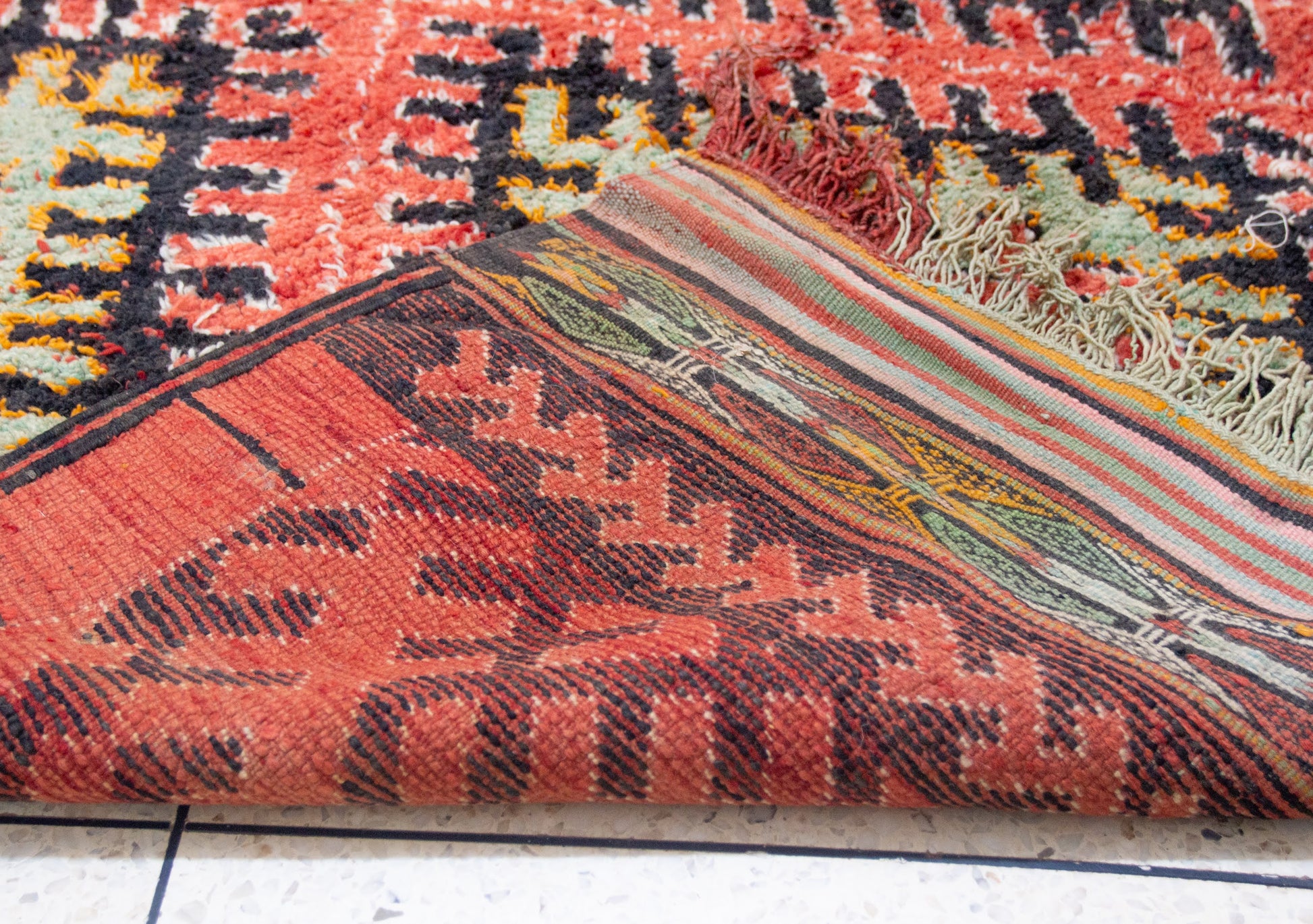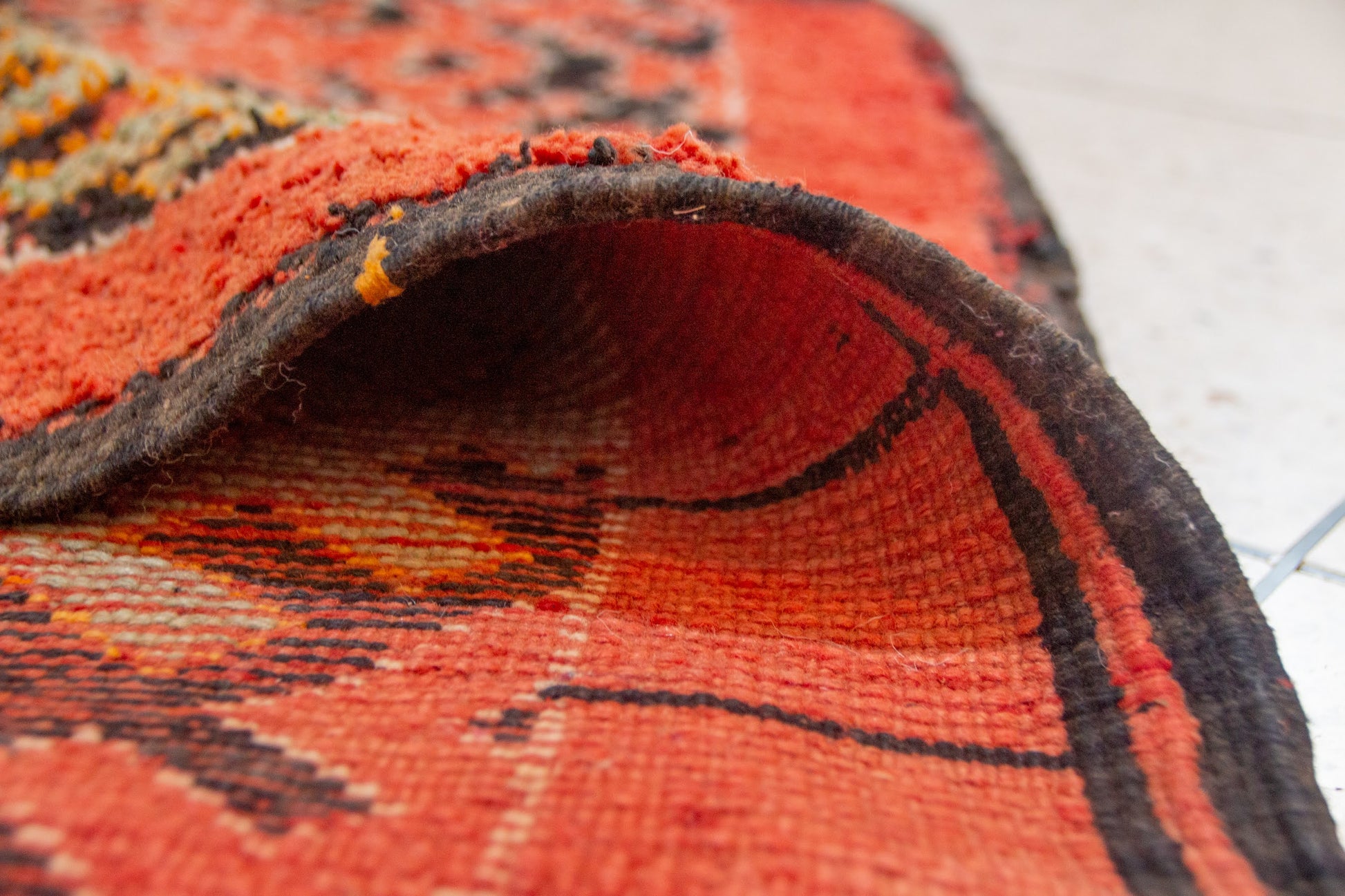 Poils de laine noués à la main, souples et résistants. Les poils moyens sont doux au toucher. Un abrash subtil et une finition en kilim tissé soulignent l'artisanat authentique du Moyen Atlas.
