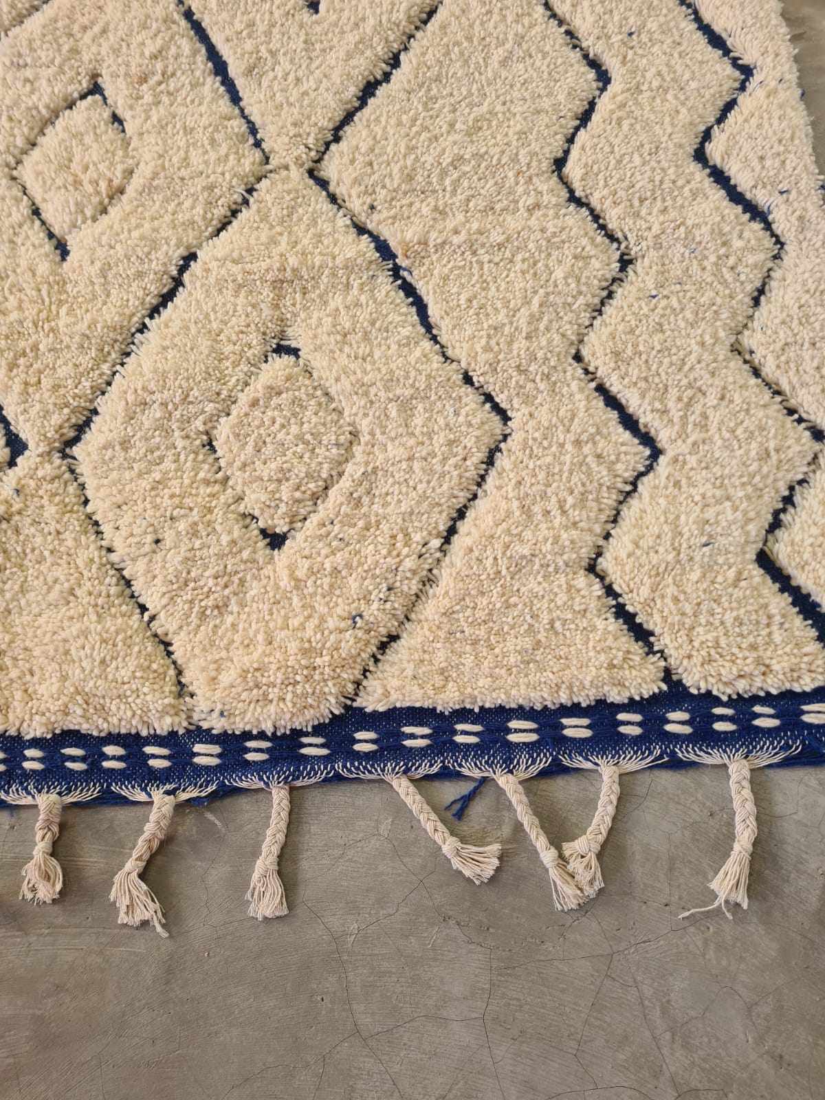 This rug is an original sample from our weaving workshop. Every stitch is handcrafted using undyed or plant-dyed wool sourced from the Atlas. The motifs, symbols, and size can all be reimagined to reflect your own vision.