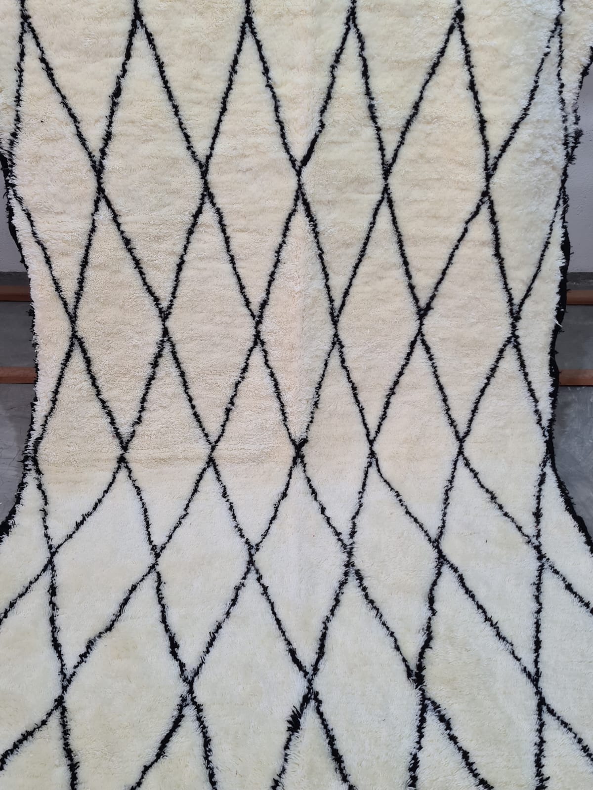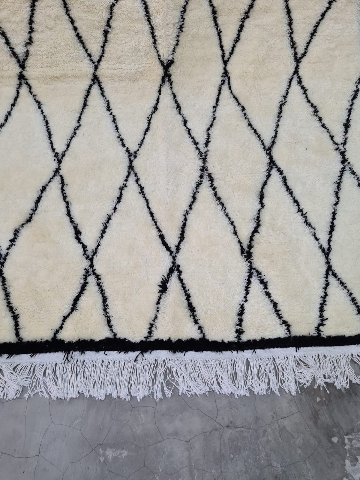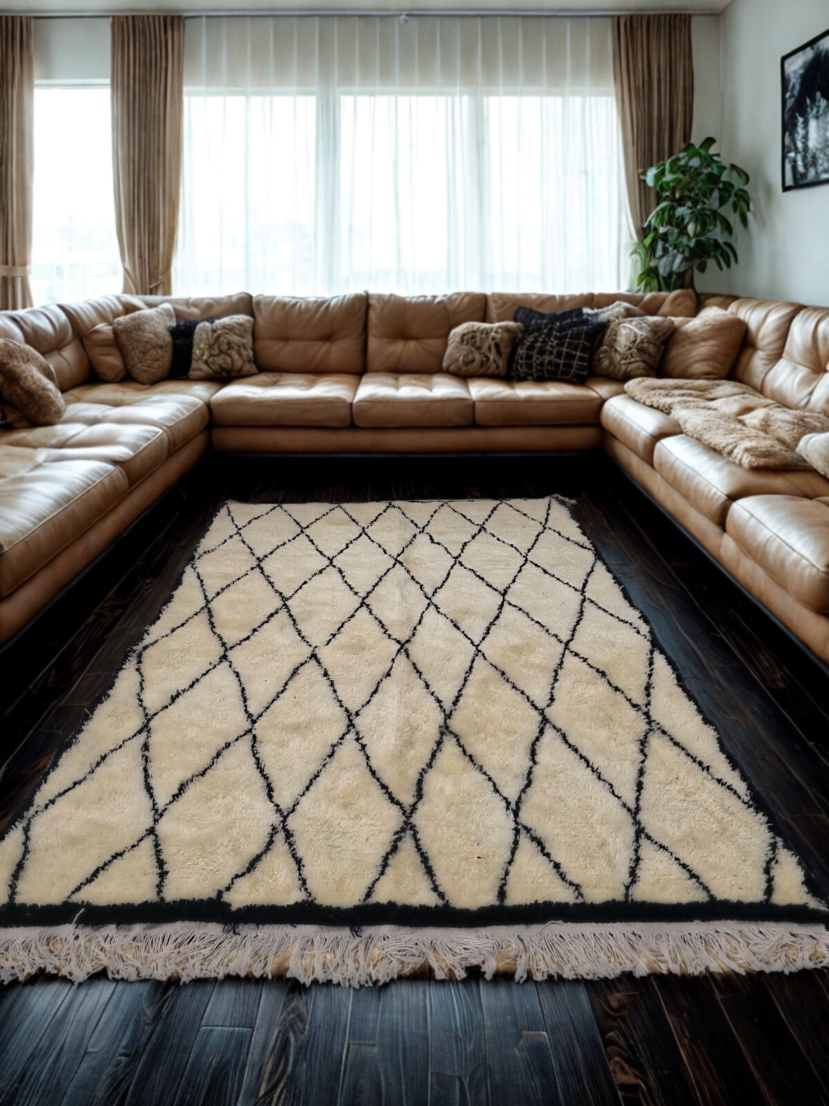 Tissé avec une trame ultra-douce, appelée localement Kubba , ce tapis est léger au toucher, facile à plier, à nettoyer et à repositionner, idéal pour les intérieurs fluides et modernes. Mais sa géométrie ancestrale, ancrée dans la langue amazighe des lignes, l'ancre dans des significations plus profondes. Ces motifs, autrefois panneaux routiers ou emblèmes protecteurs, constituent aujourd'hui une cartographie discrète de la beauté et de la structure.