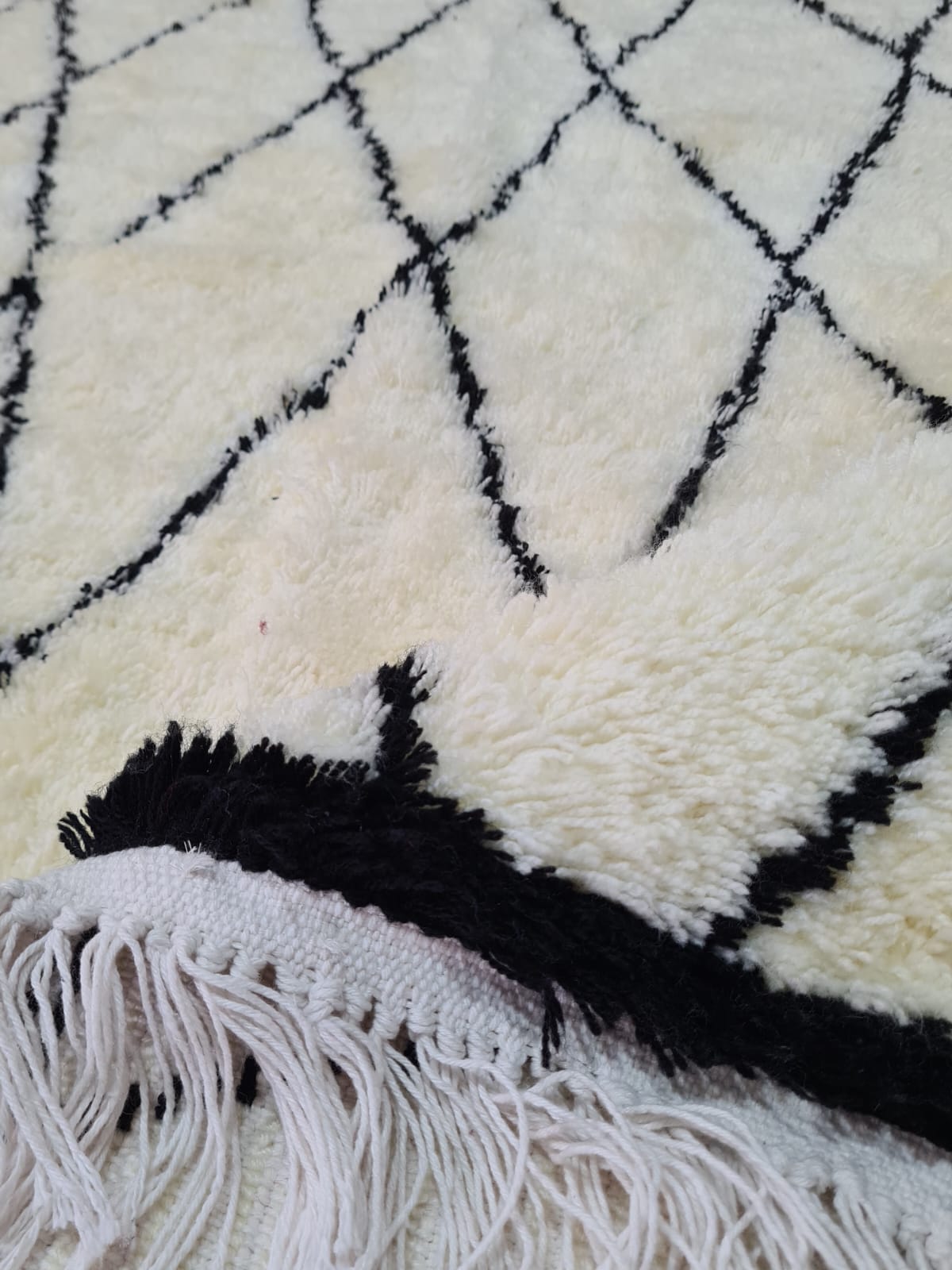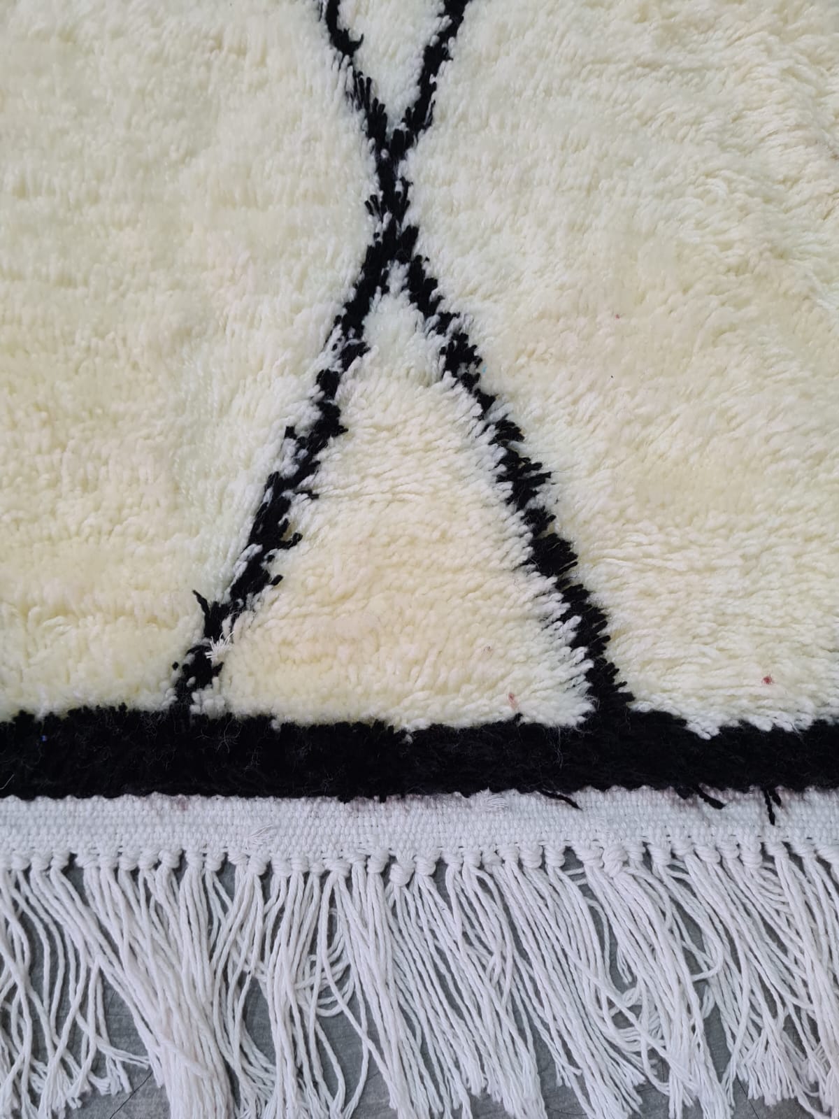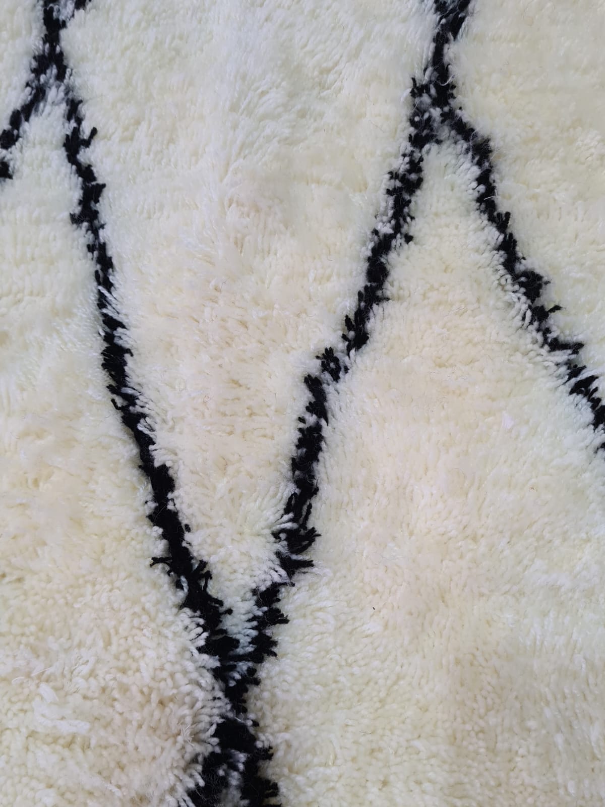 Tissé avec une trame ultra-douce, appelée localement Kubba , ce tapis est léger au toucher, facile à plier, à nettoyer et à repositionner, idéal pour les intérieurs fluides et modernes. Mais sa géométrie ancestrale, ancrée dans la langue amazighe des lignes, l'ancre dans des significations plus profondes. Ces motifs, autrefois panneaux routiers ou emblèmes protecteurs, constituent aujourd'hui une cartographie discrète de la beauté et de la structure.
