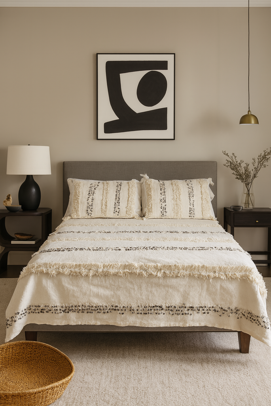 - Pairs effortlessly with boucle, oak or walnut nightstands, and matte black lighting for a curated, gallery-calm suite.