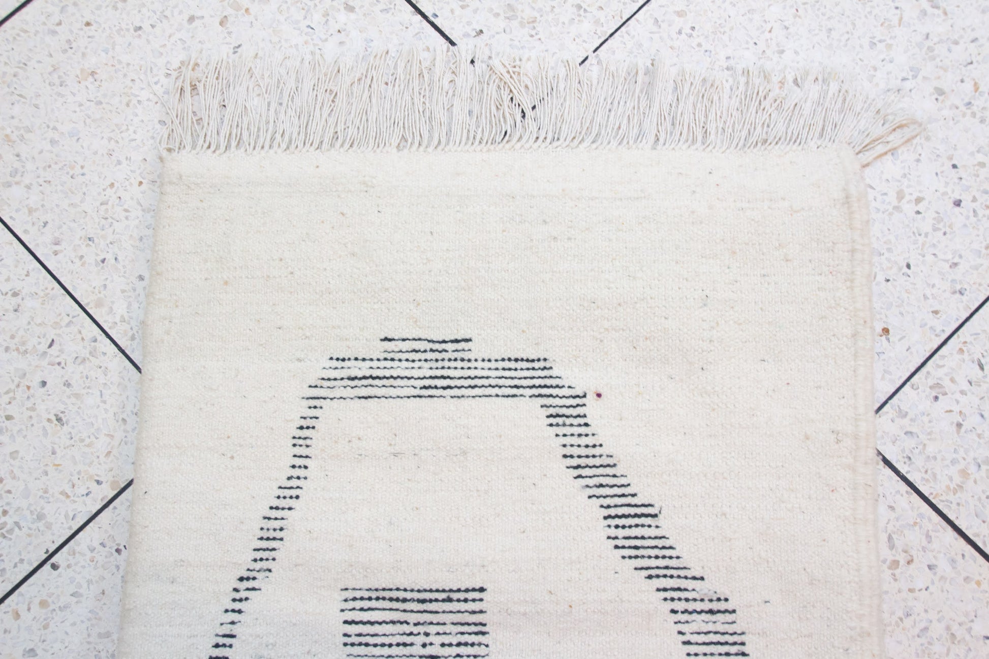 Azilal Abstract Skyline — Ivory Wool with Black & Taupe Motifs