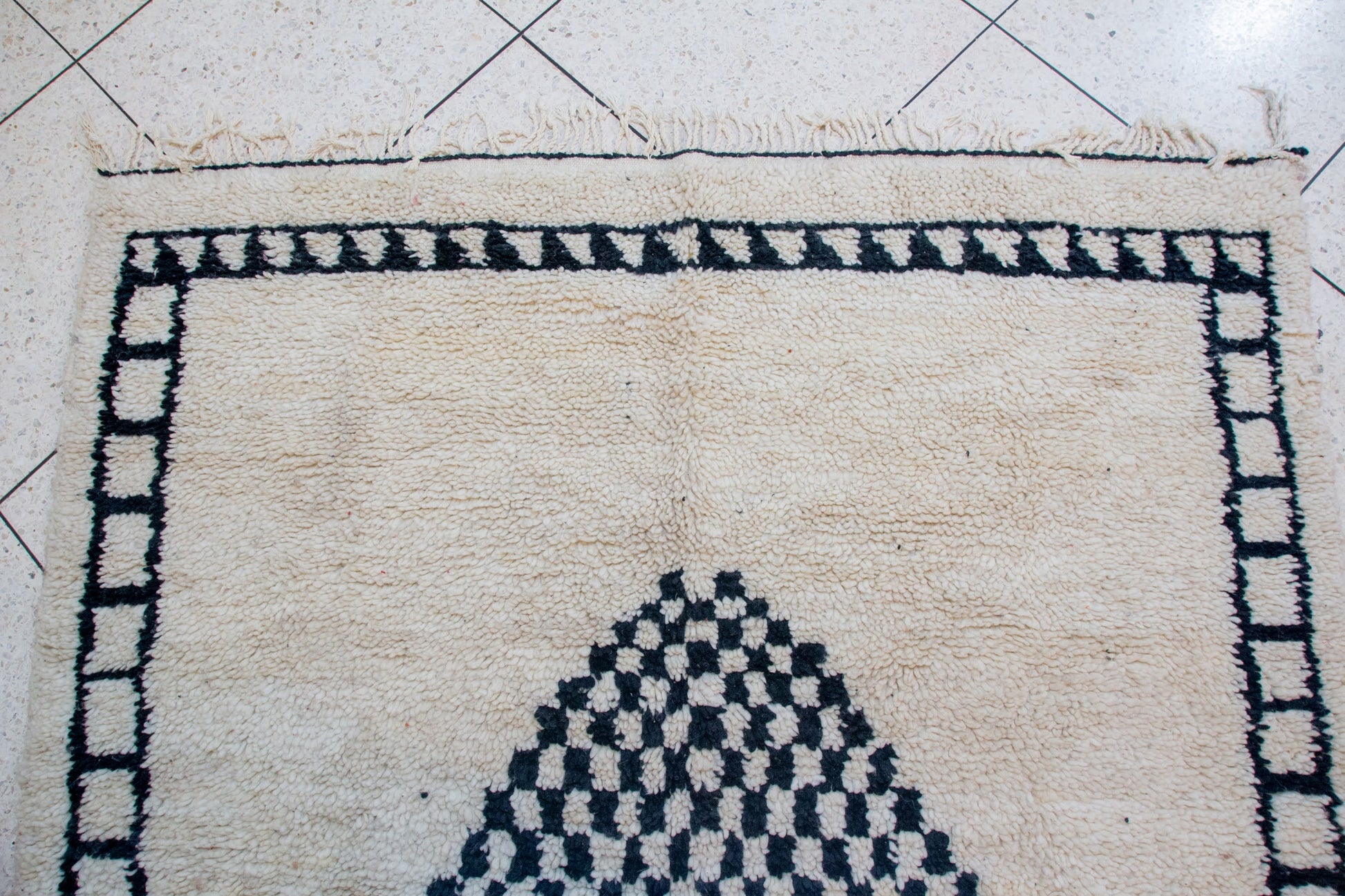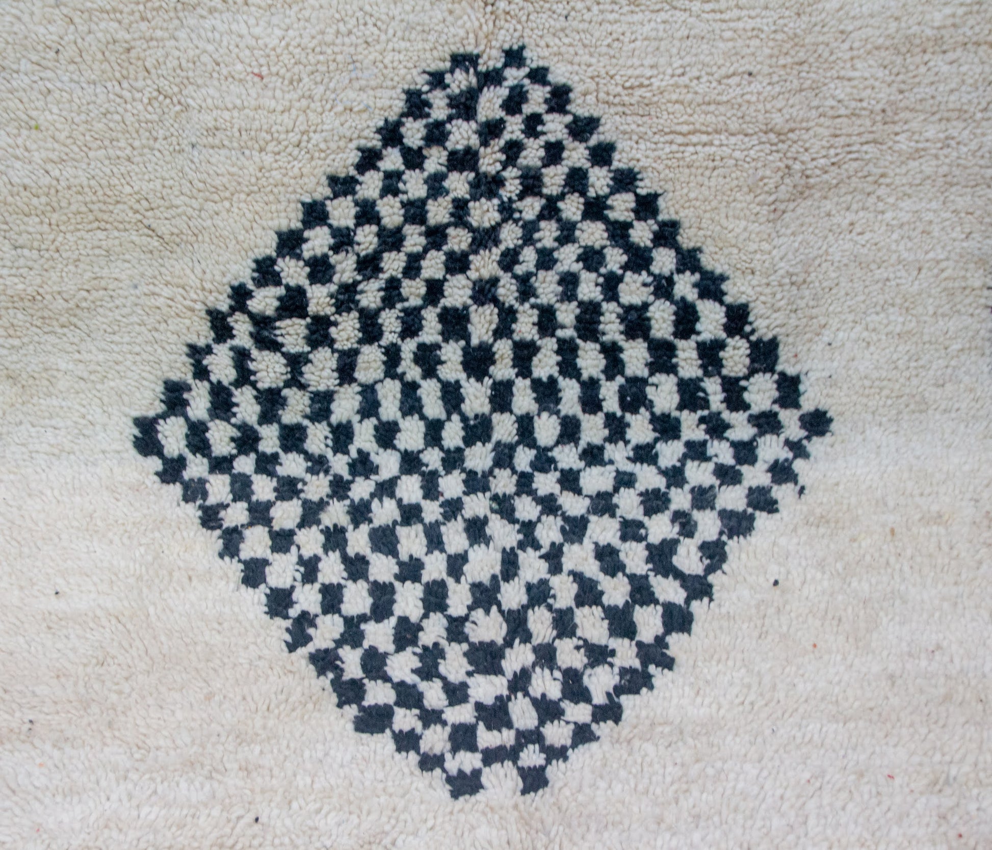 Beni Ourain Checker Pyramid — Ivory Wool with Geometric Border (250 × 150 cm)