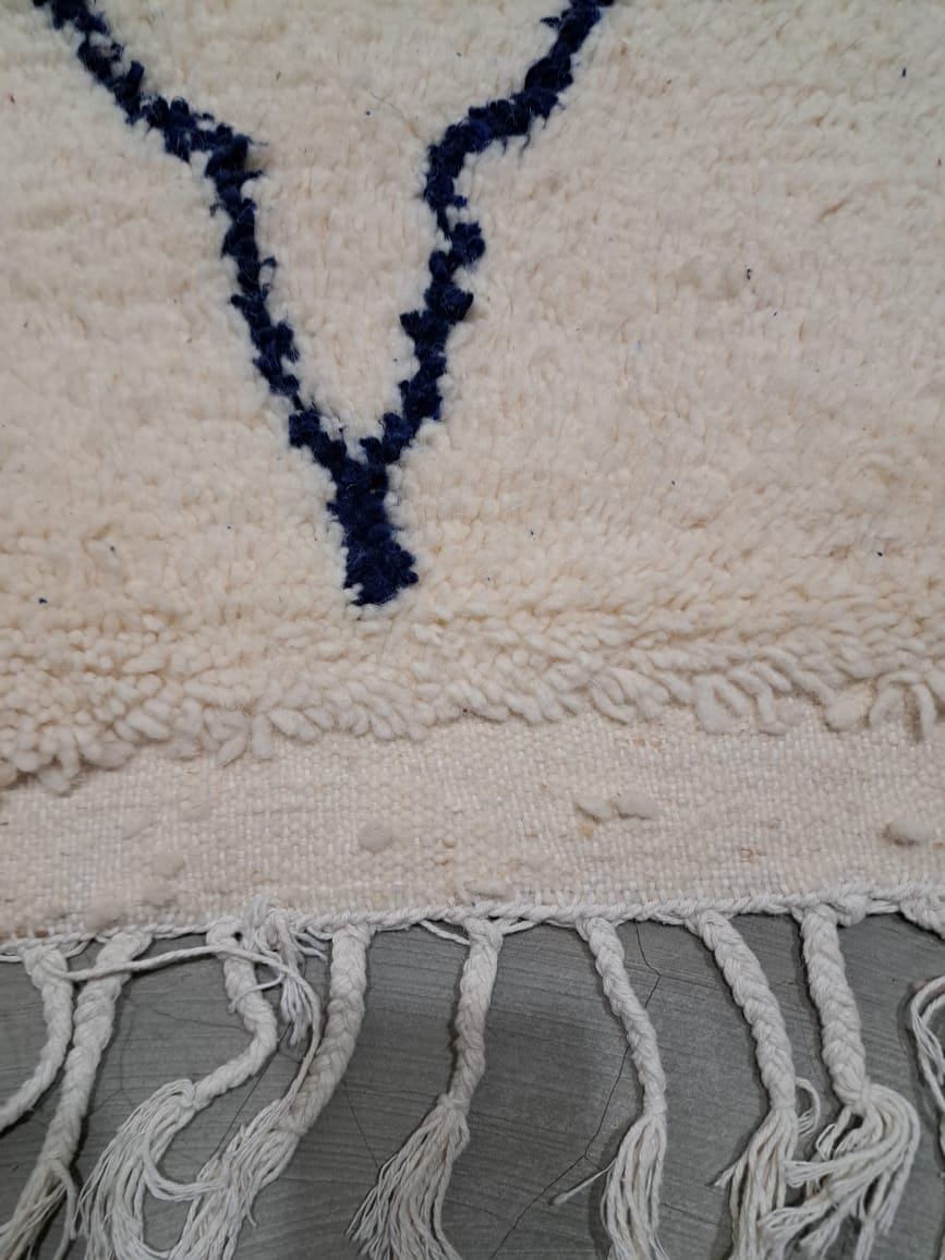 A quiet geometric statement — the essence of Beni Ourain purity, refined with indigo linework.