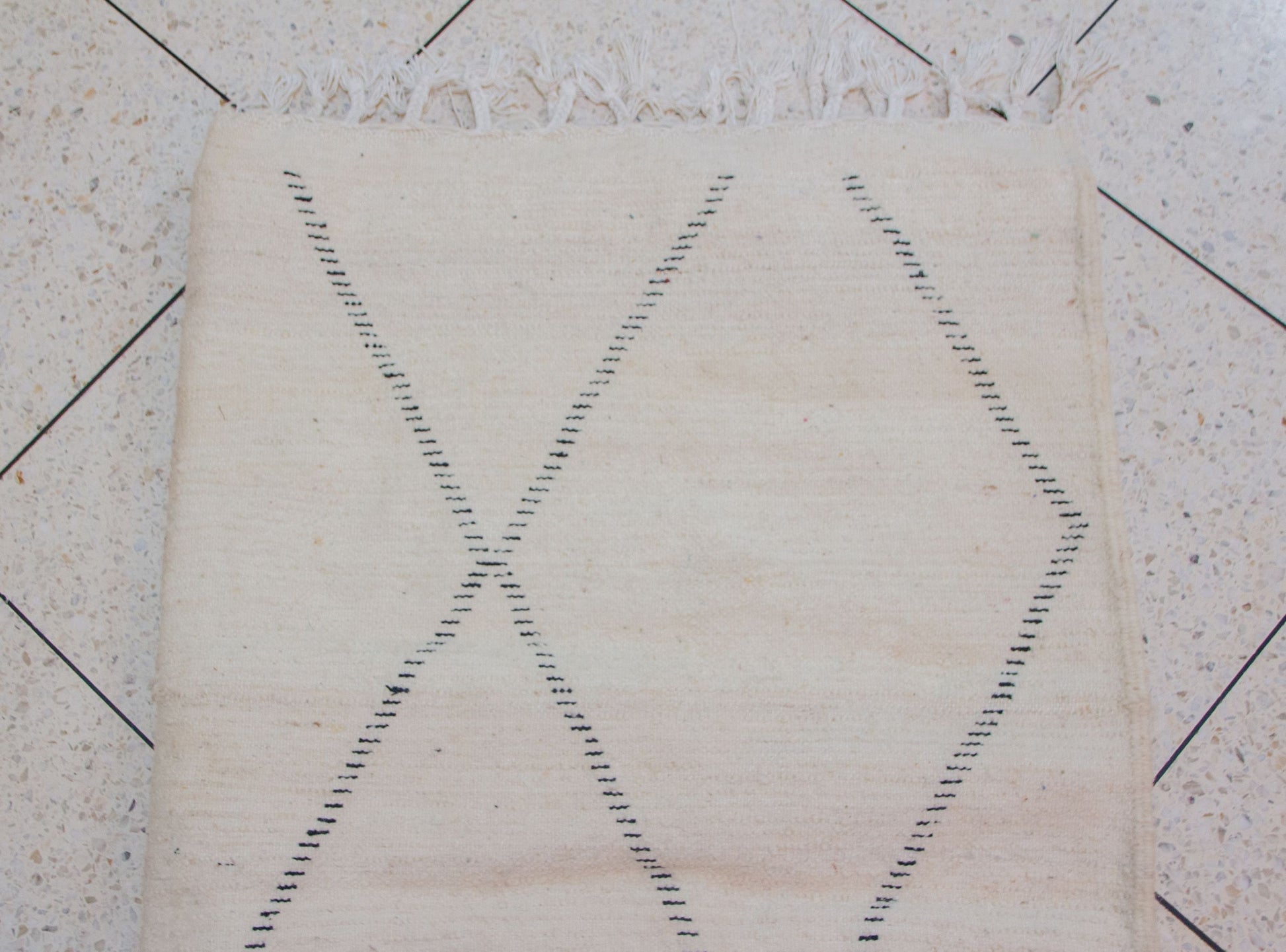 Open diamonds, open space—Beni Ourain serenity drawn in indigo on ivory.