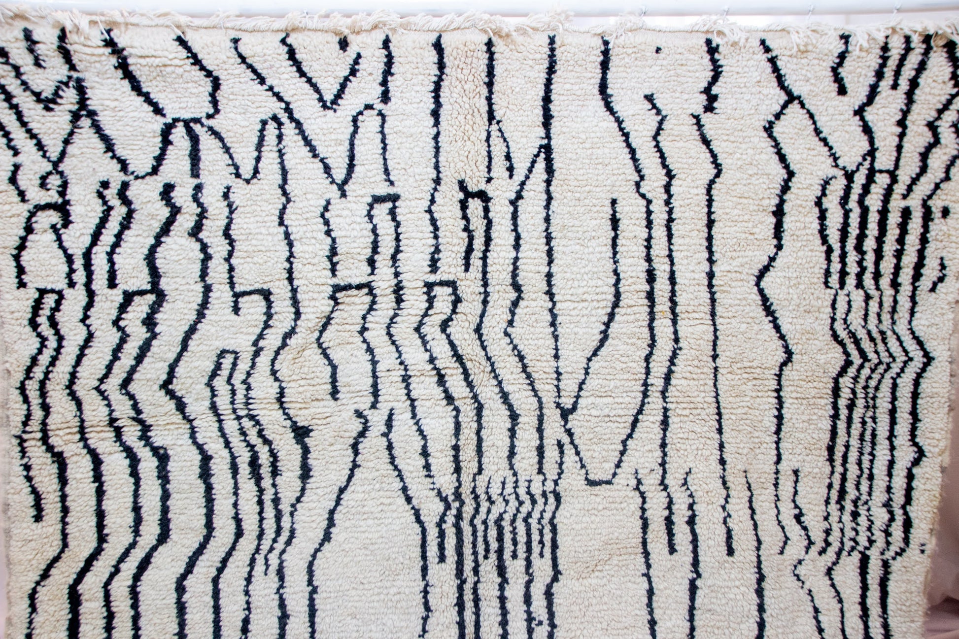 Beni Ourain Pile Rug — “Ink-Line Grove” on Ivory