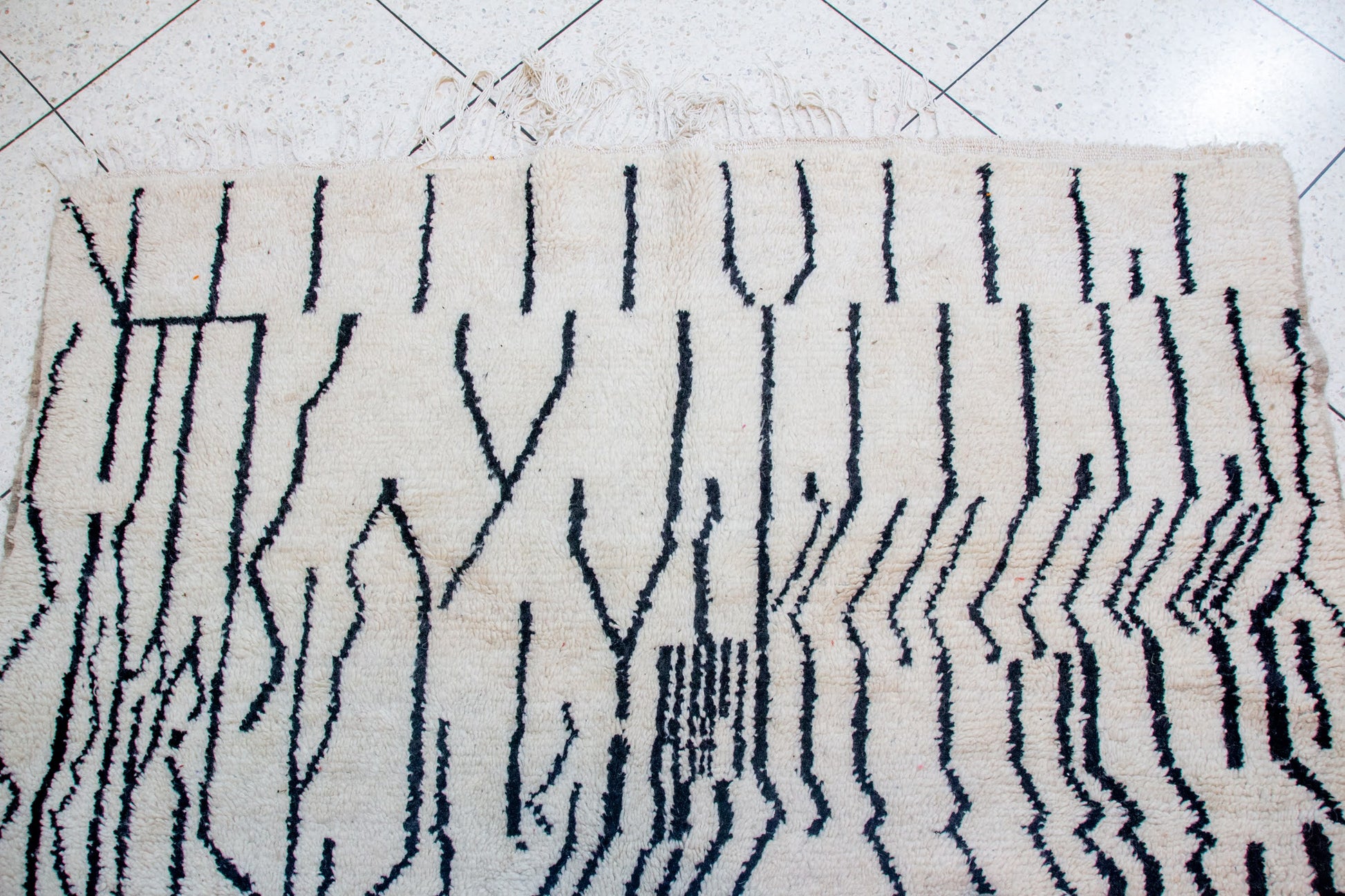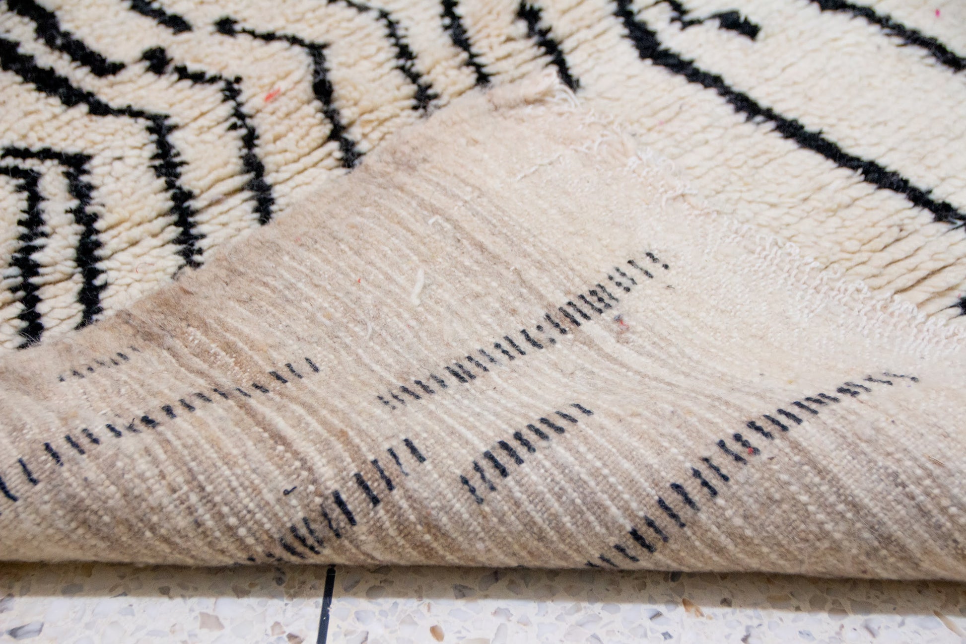 Beni Ourain Pile Rug — “Ink-Line Grove” on Ivory (250 × 150 cm)