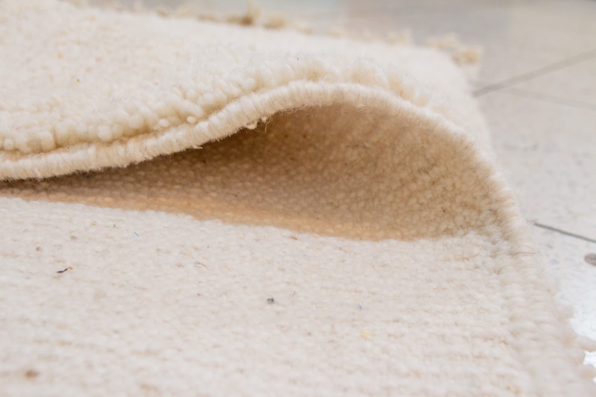 This rug is an original sample from our weaving workshop. Every stitch is handcrafted using undyed or plant-dyed wool sourced from the Atlas. The motifs, symbols, and size can all be reimagined to reflect your own vision.