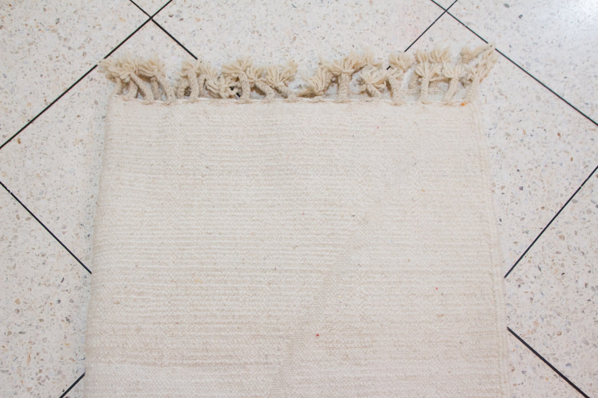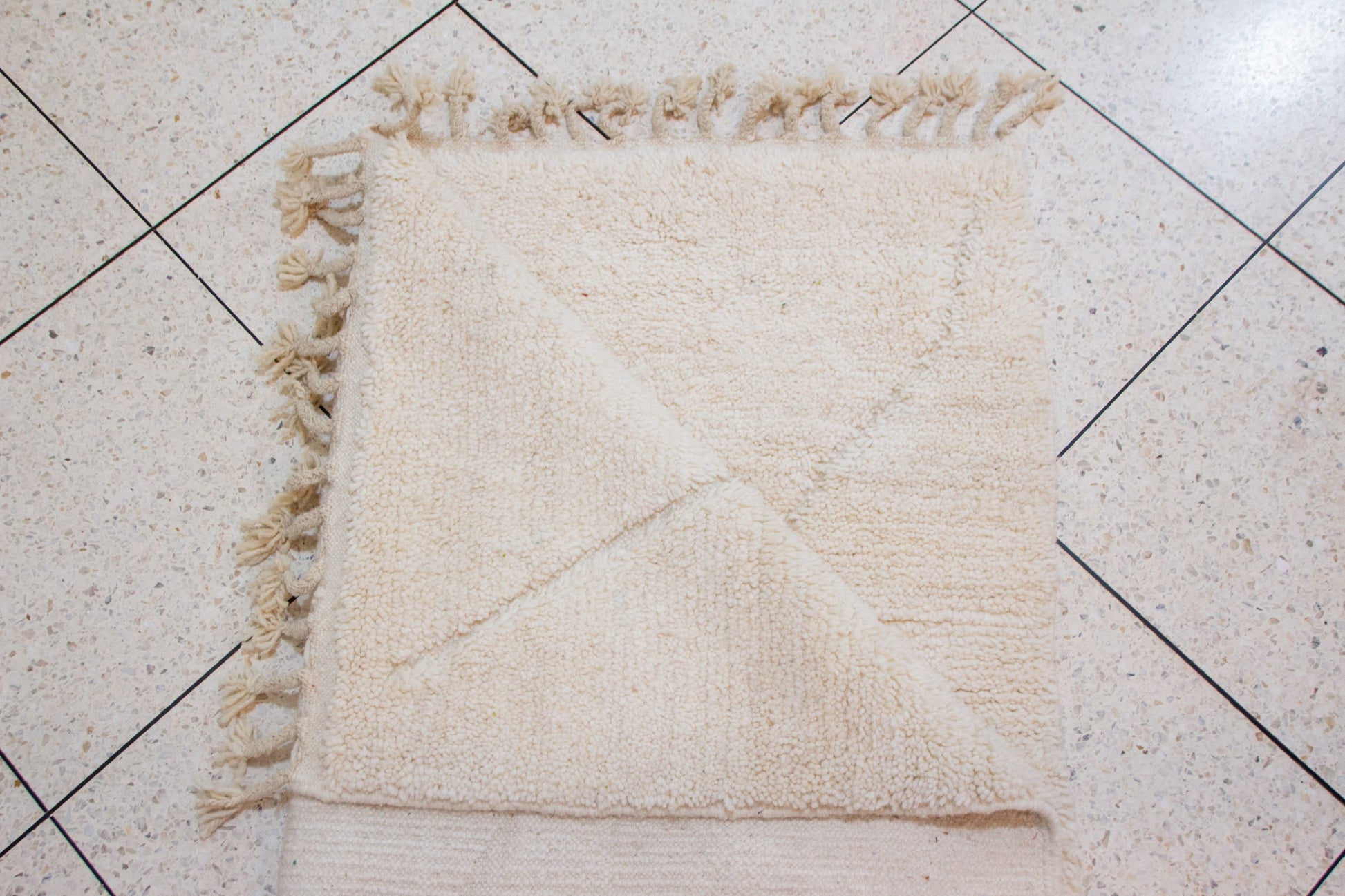Minimalist Amazigh craft—pure texture in calming ivory with whisper-soft geometry.