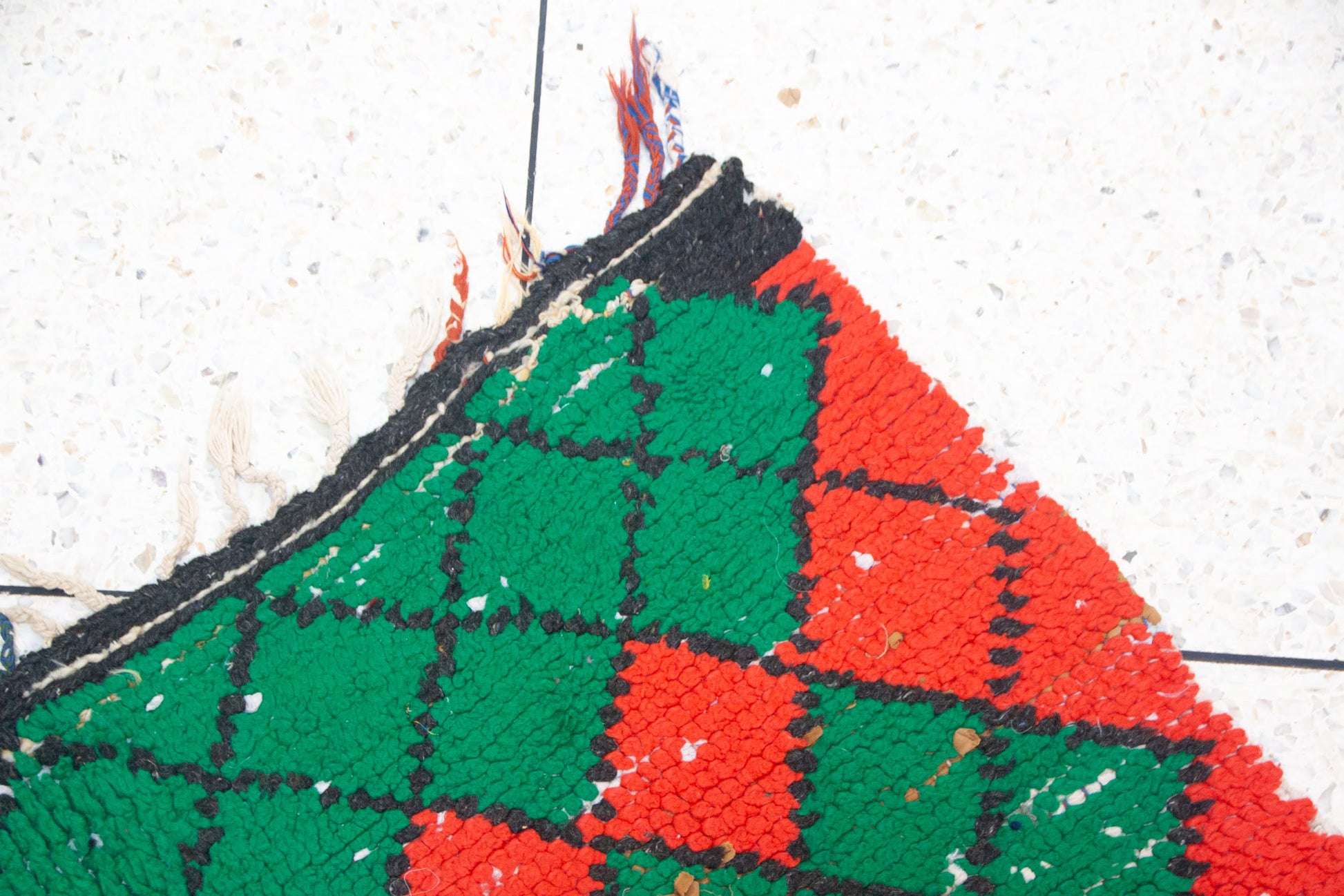 Boucherouite Argyle Lattice — Red & Emerald Reclaimed-Textile Rug