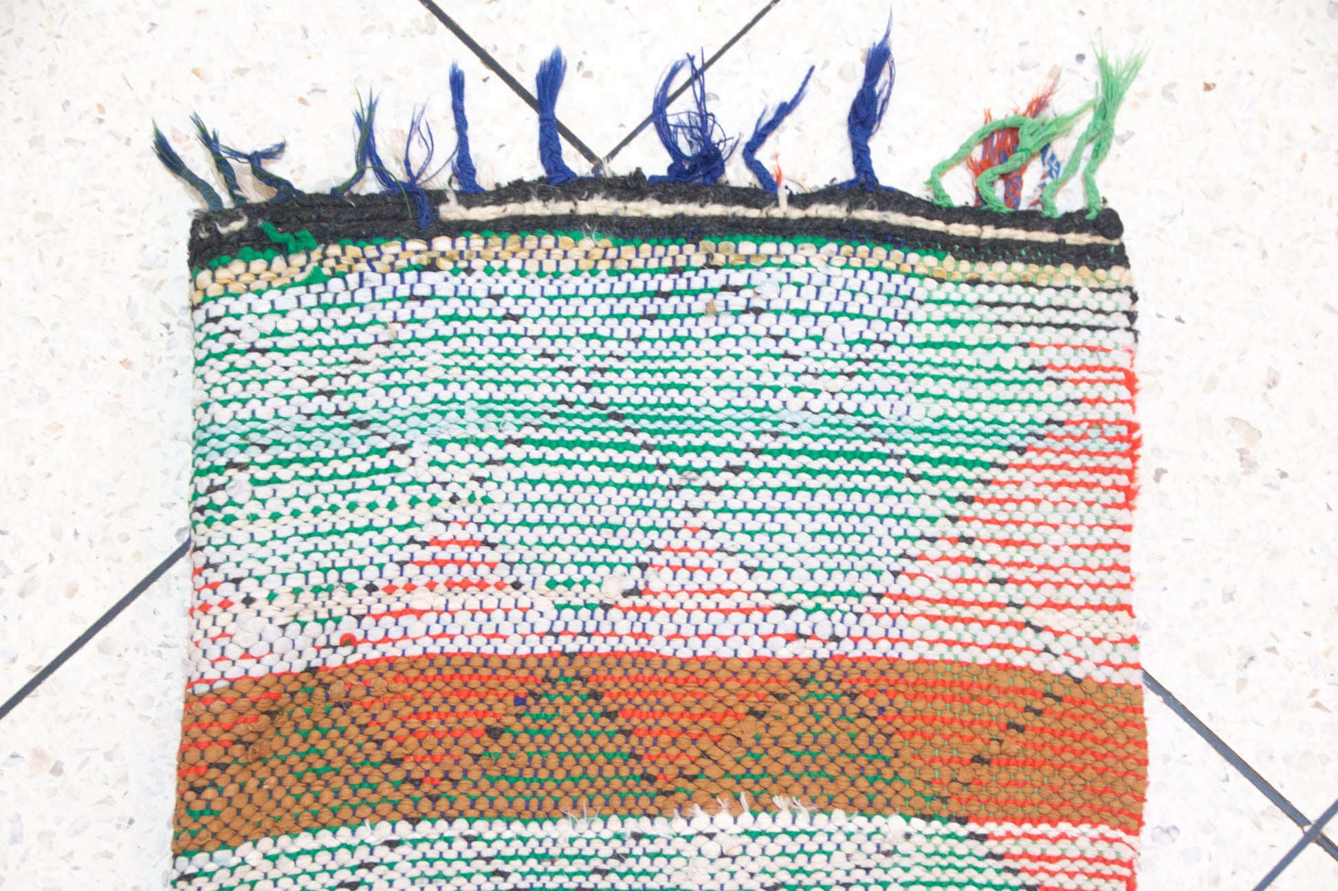 Salvaged color, recast as Amazigh argyle—graphic, joyful, and unmistakably handmade.