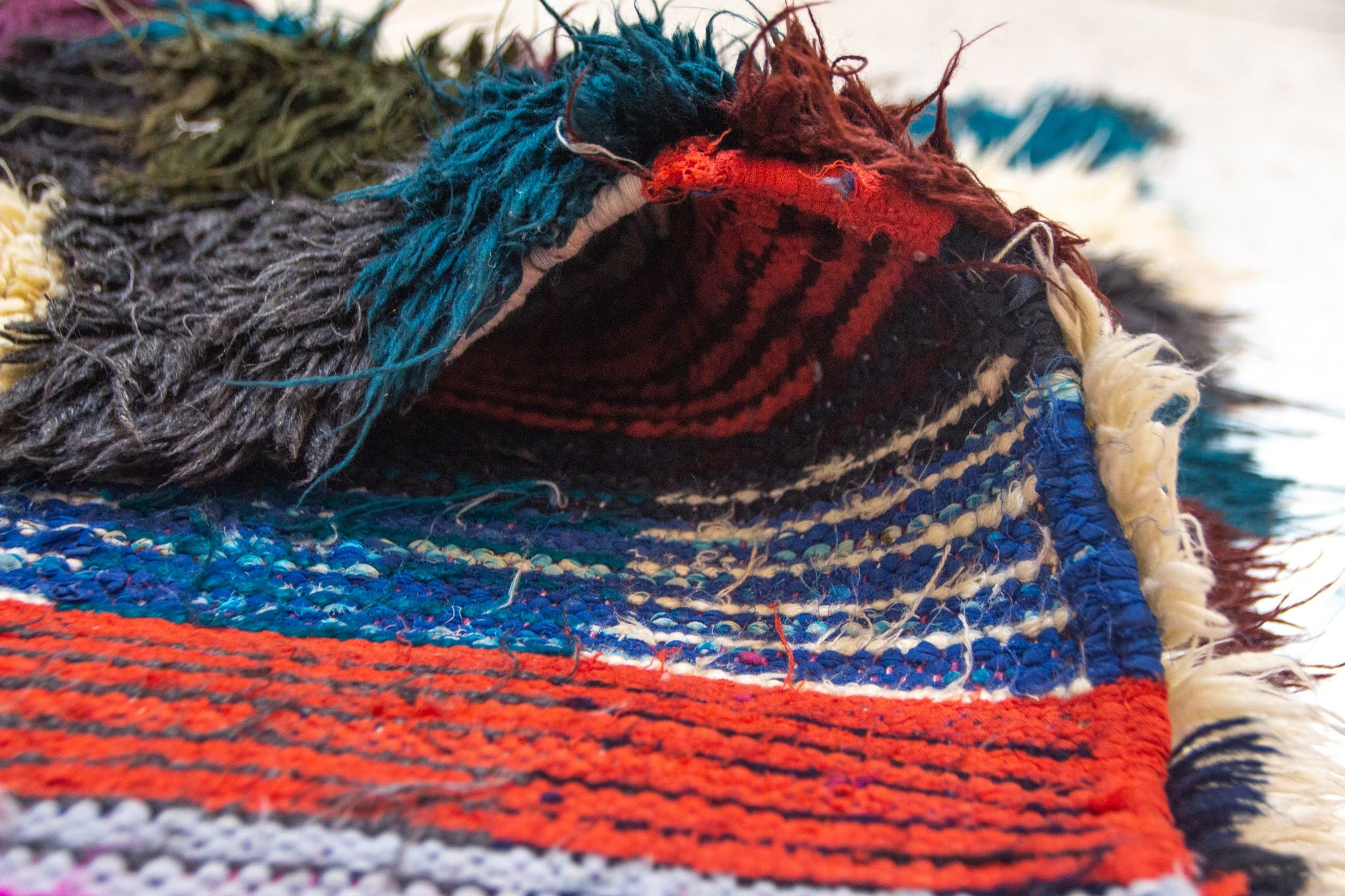 A path of saved textiles—every square a color note in the Amazigh symphony of reuse.