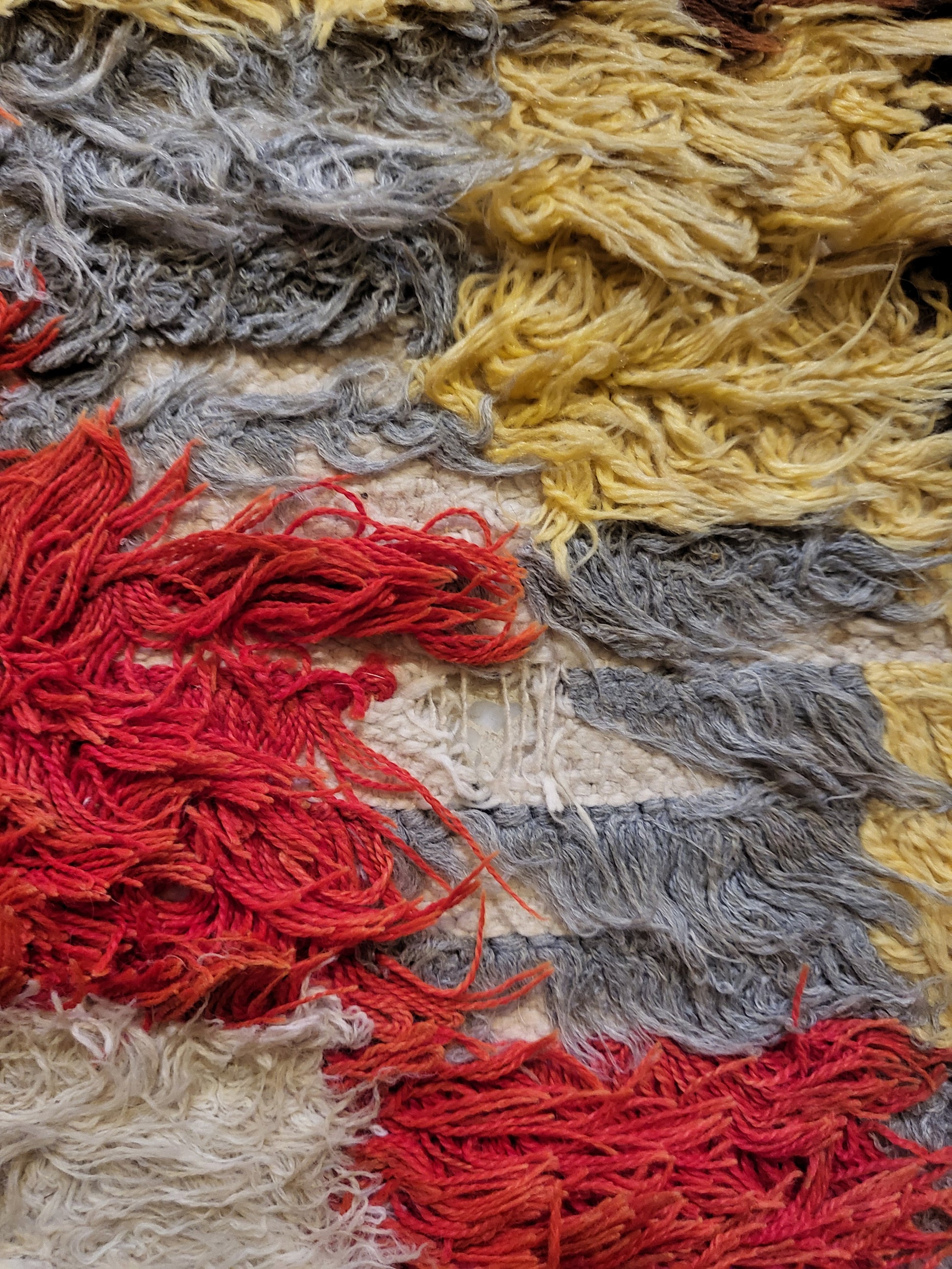 - Materials: Recycled cotton and mixed textiles (pile); cotton warp/weft