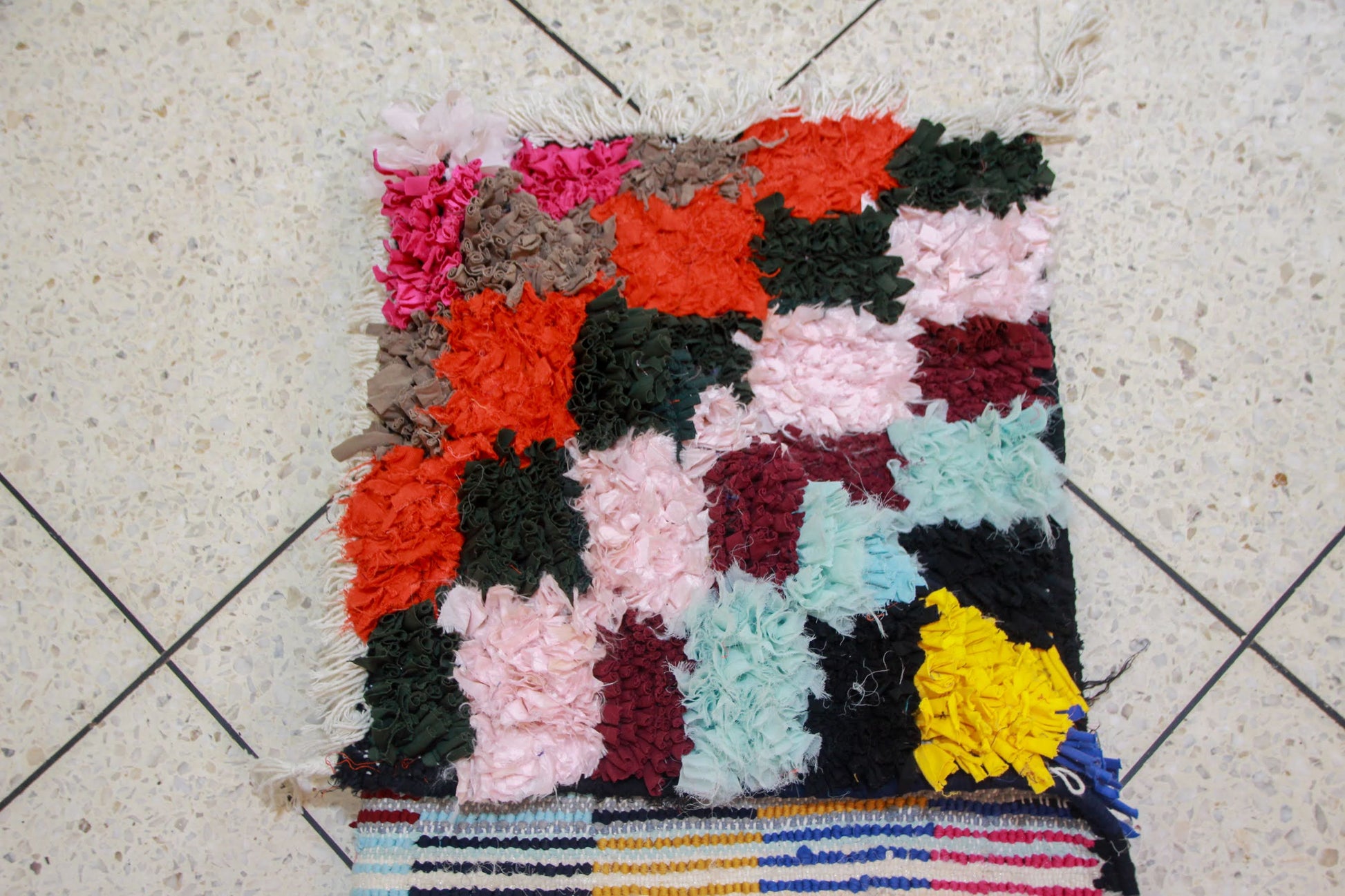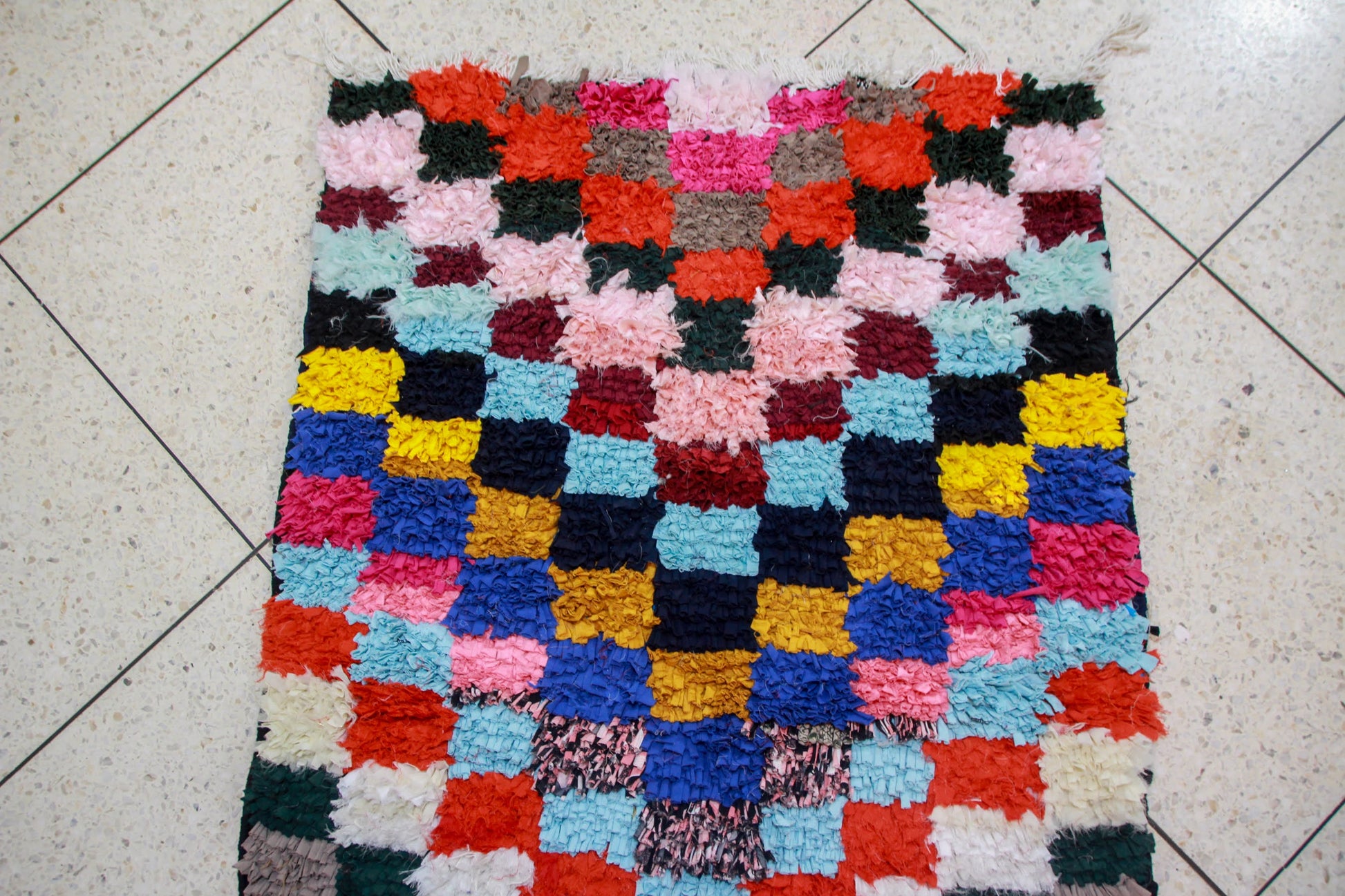 Boucherouite Jewel-Check Mosaic — Multicolor Reclaimed-Textile Runner (190 × 90 cm)