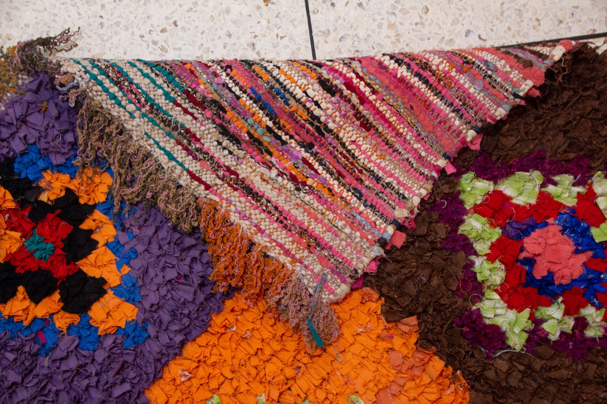 Boucherouite Mosaic Runner — Multicolor Reclaimed-Textile Checker