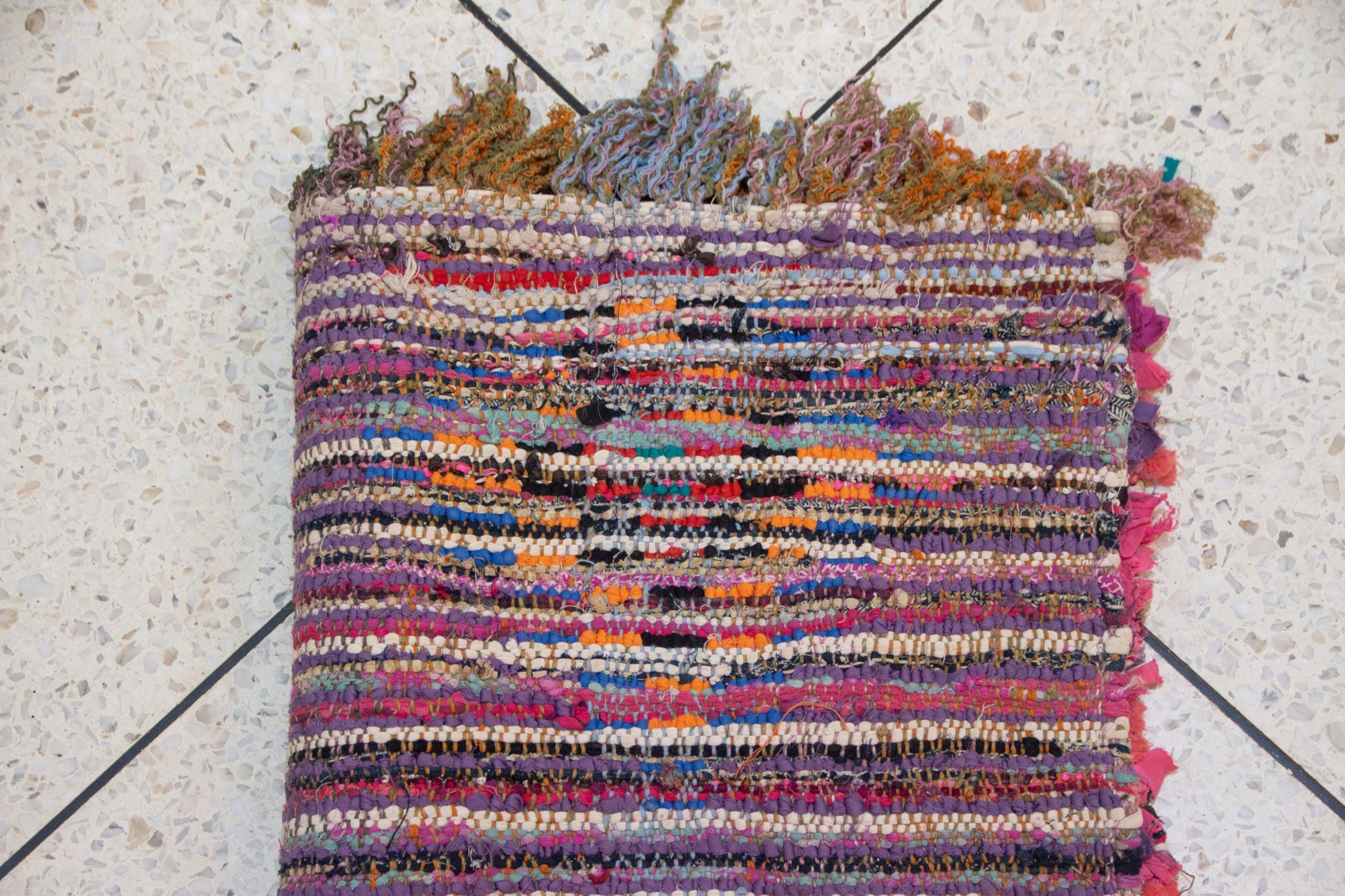 - Fringe: Short mixed-fiber tassels in multicolor