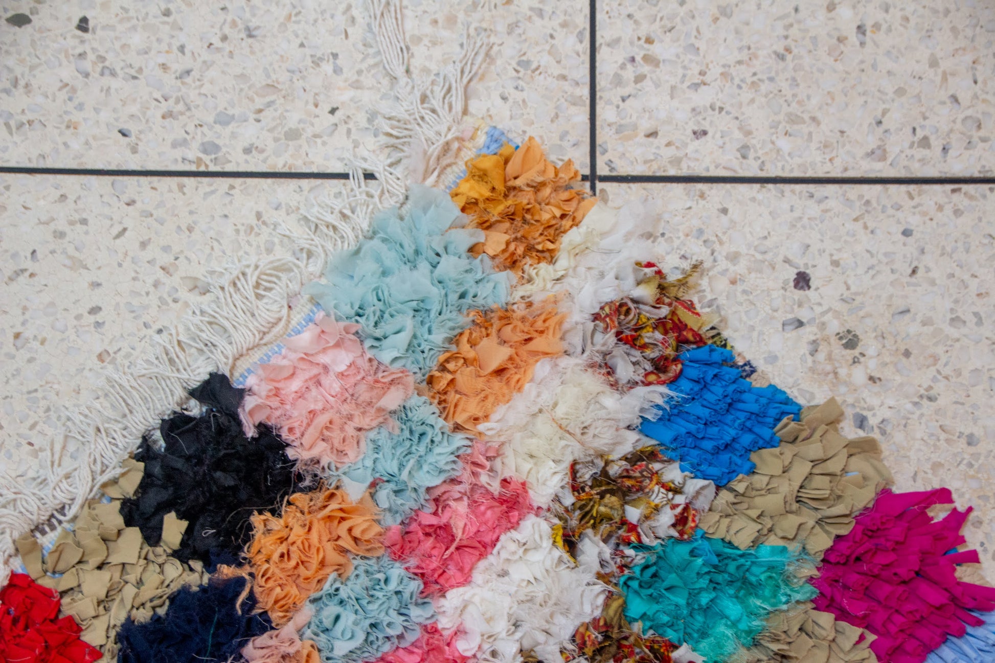 Boucherouite Mosaic Runner — Multicolor Reclaimed-Textile Checker