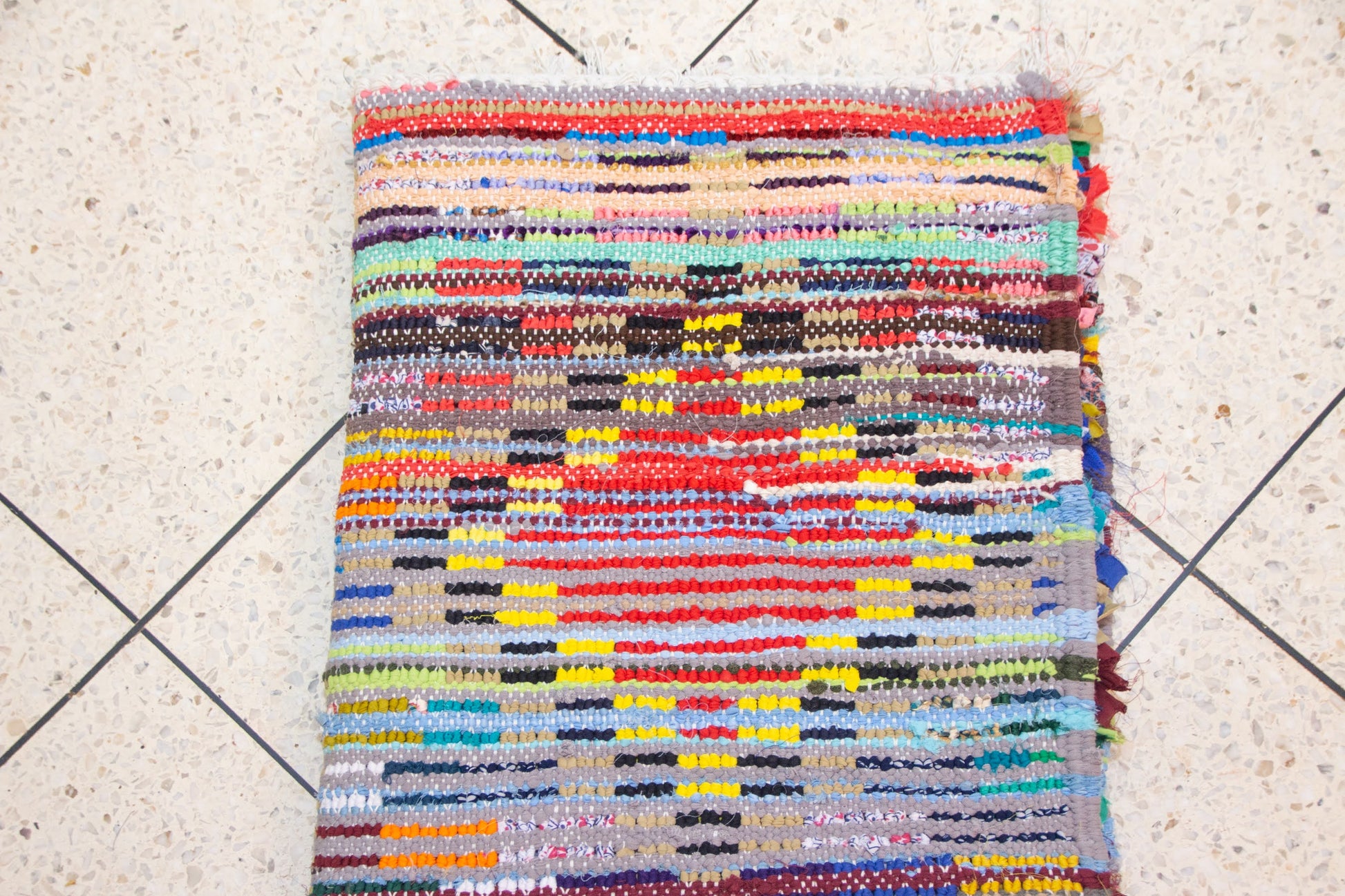 - Vacuum with suction only (no rotating brush). Spot-clean gently; professional cleaning recommended for rag-pile weaves.