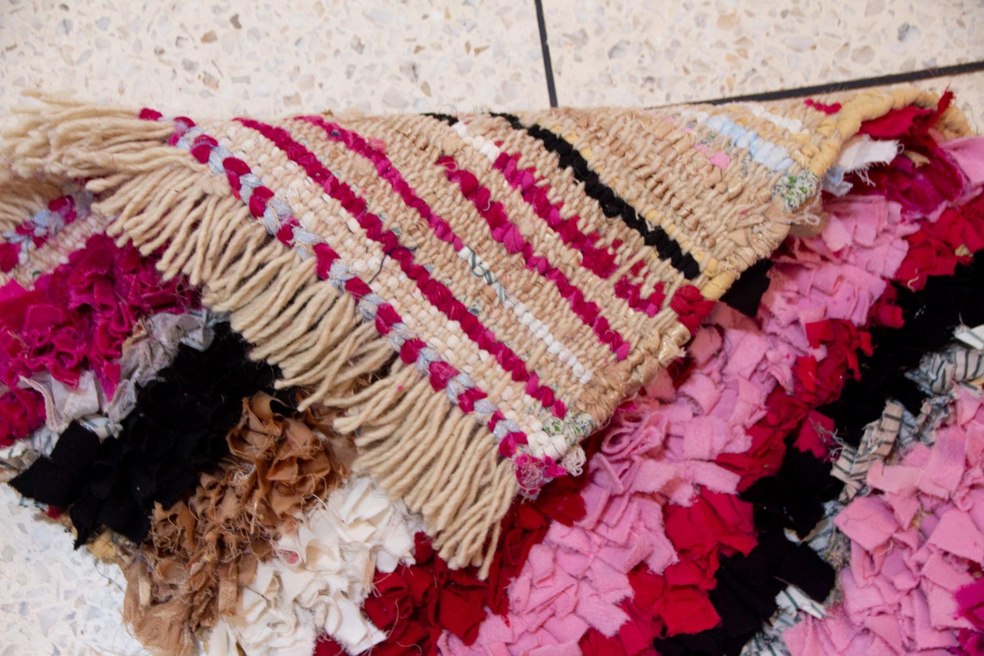 Stripes of memory and color—an upcycled textile poem from the Moroccan Atlas.