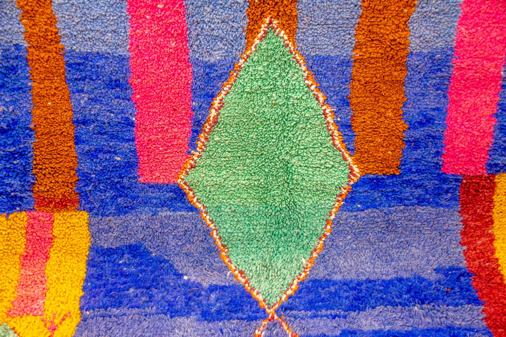 A confident blue field, ceremonial axis—Boujaad color as architecture.