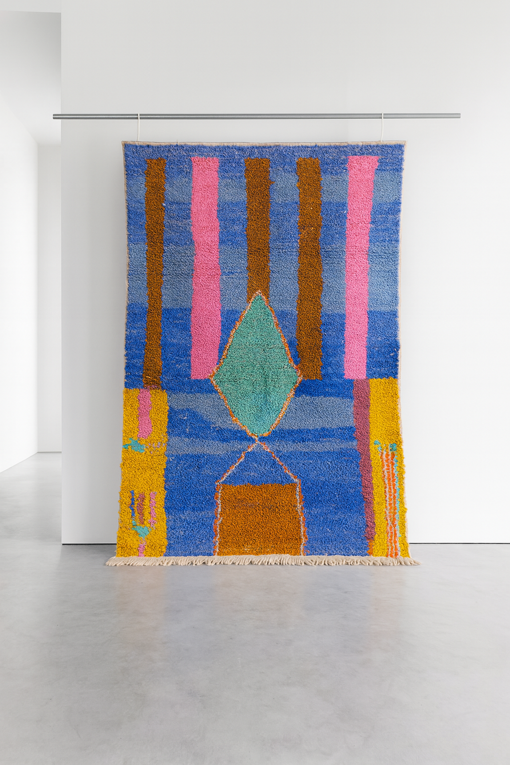 Boujaad Azure Columns — Mint Lozenge on Blue Field (250 × 150 cm)