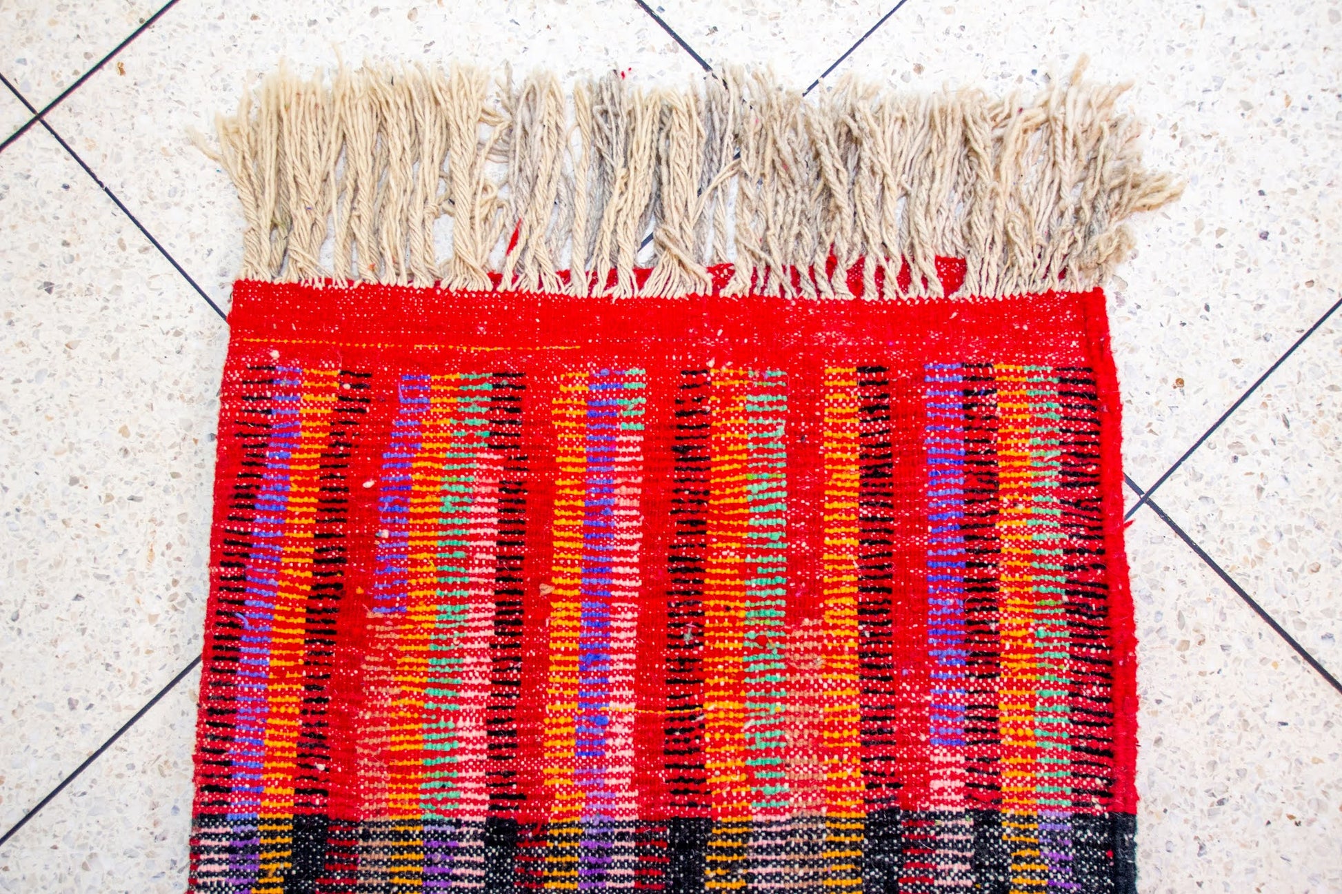 Boujaad Chromatic Rainfall — Multicolor Wool Stripes on Red Ground