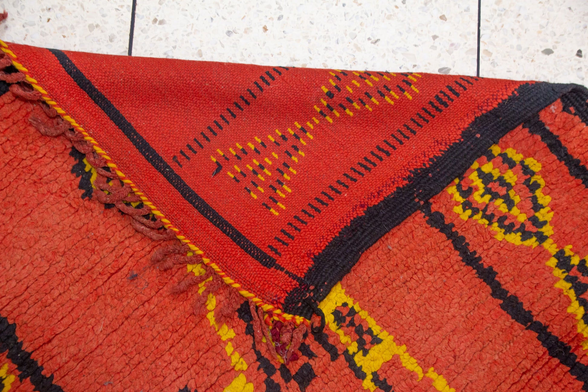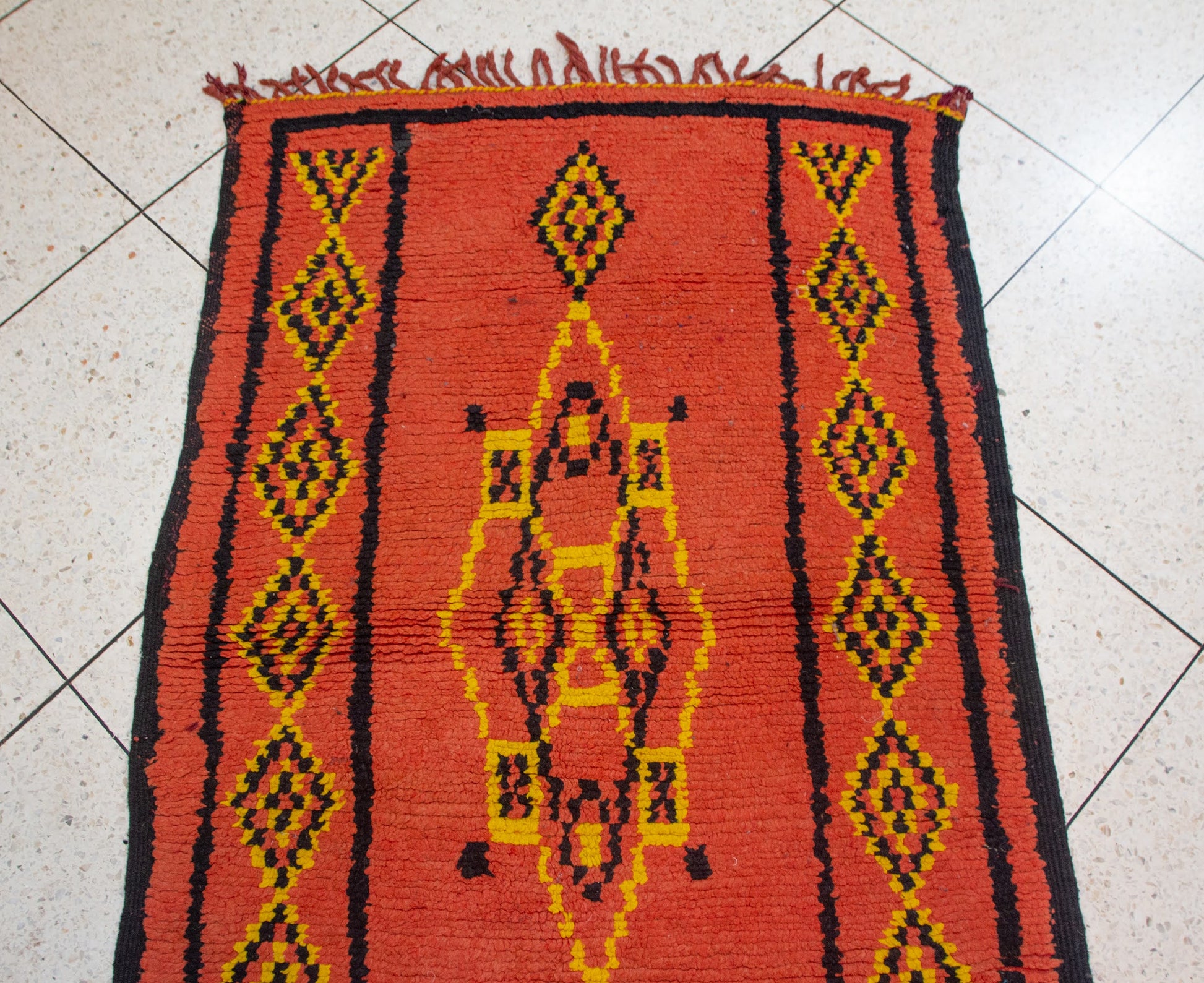 A corridor of color—saffron diamonds and coral ground guiding the eye along a Boujaad journey.