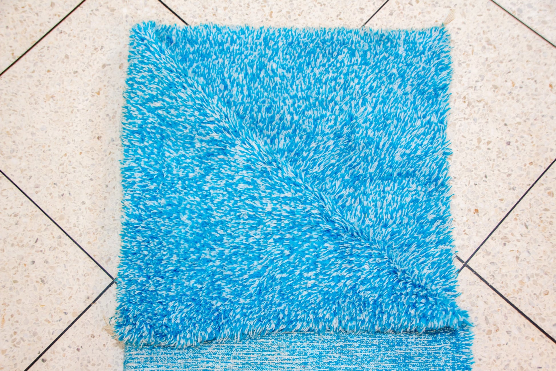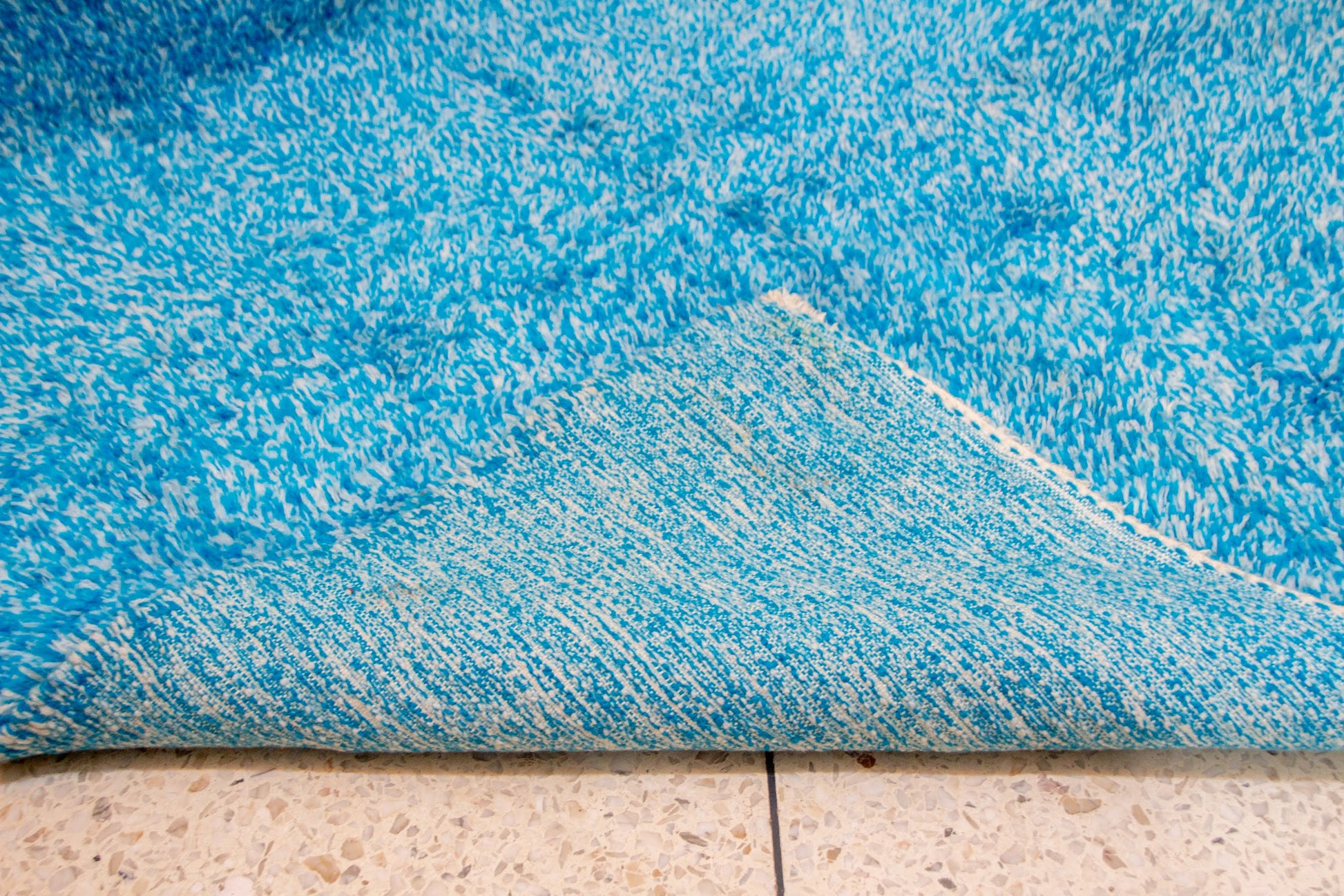 A pure field of Moroccan blue — Boujaad wool rendered as a living canvas of color.