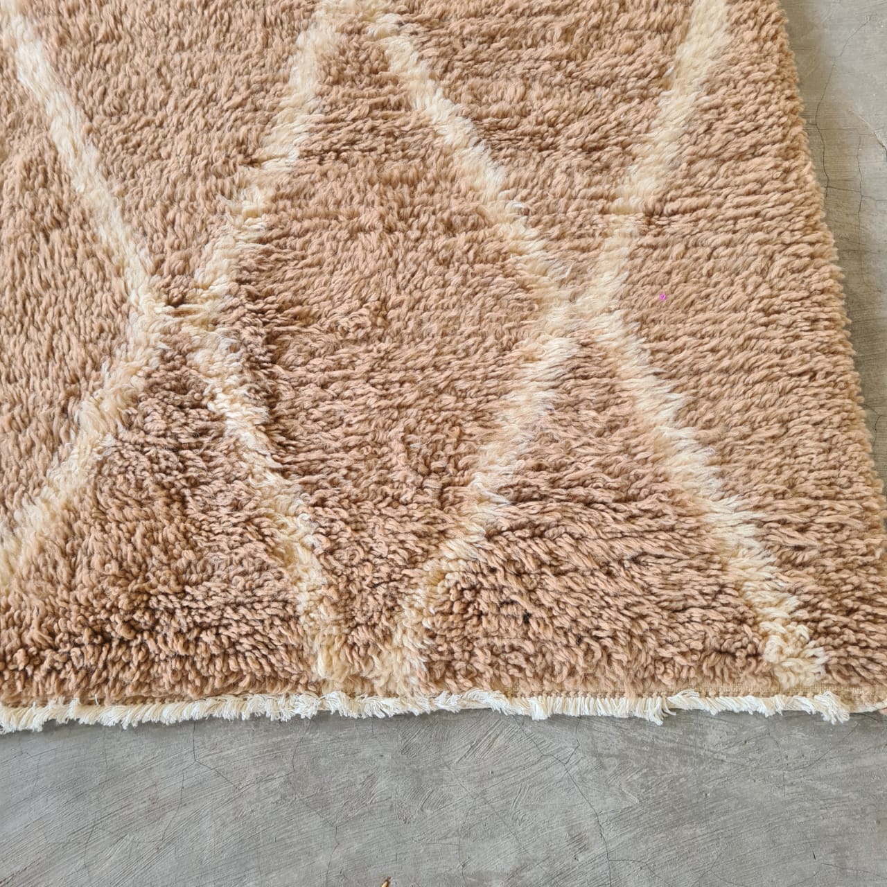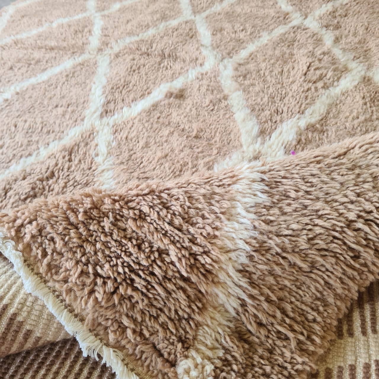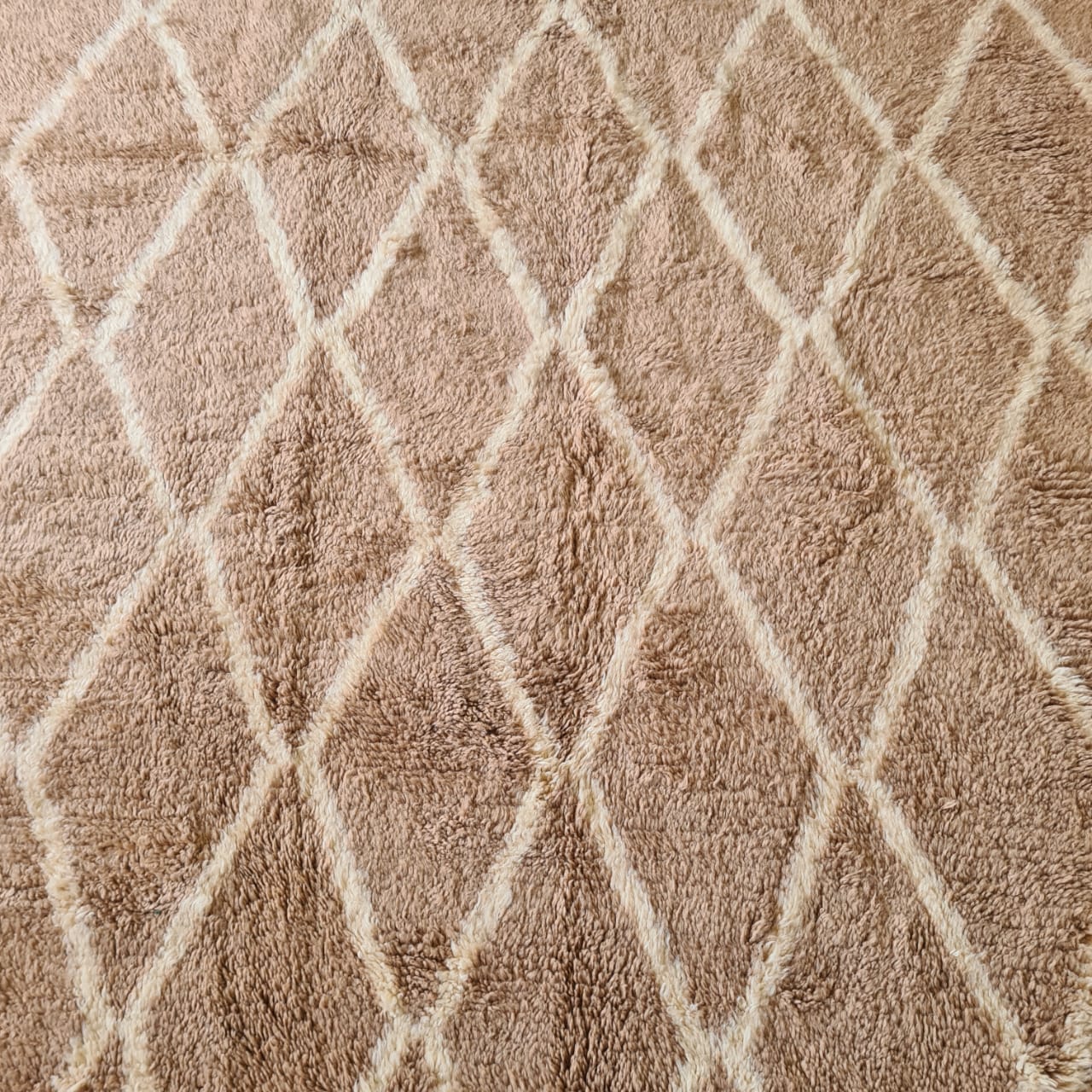 A refined Marmoucha woven in a warm caramel field with a crisp ivory diamond lattice. Plush, even pile gives a luxurious hand; the clean bound edges keep the profile contemporary and easy to style. Architectural calm with gentle warmth.