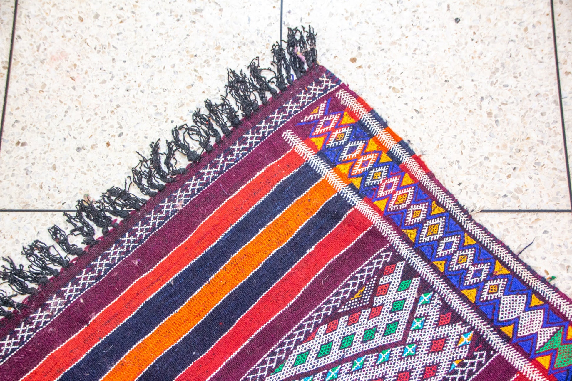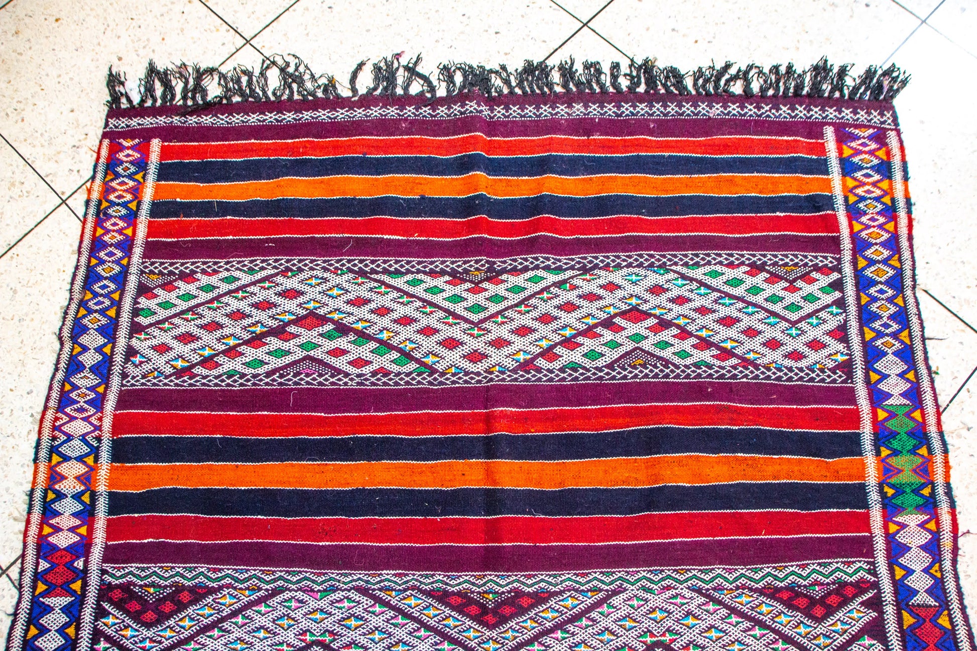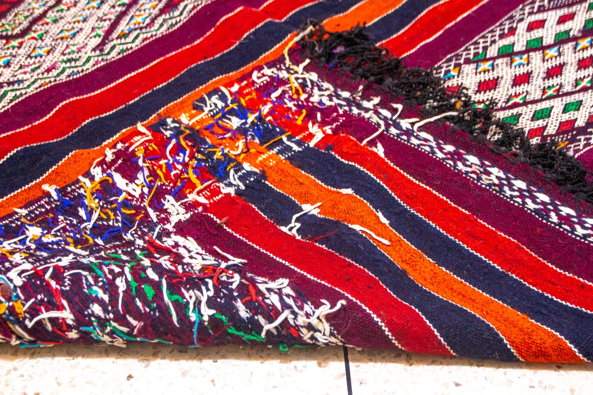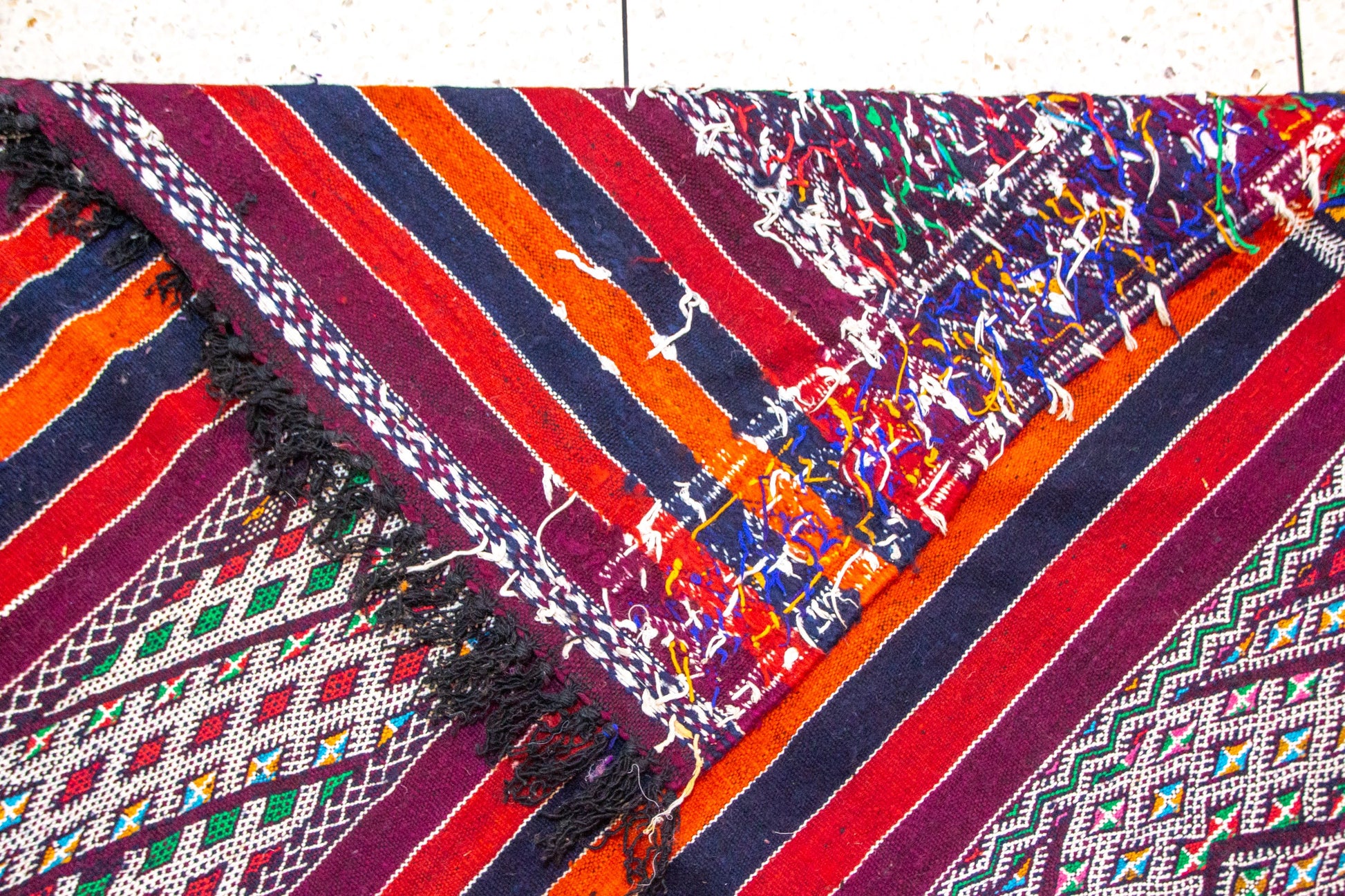 Known for their dense, reversible flatweave structure, Beni Mguild textiles were traditionally woven as both functional coverings and ceremonial heirlooms. This piece carries the unmistakable signature of a master weaver, balancing technical complexity with sacred geometric rhythm.