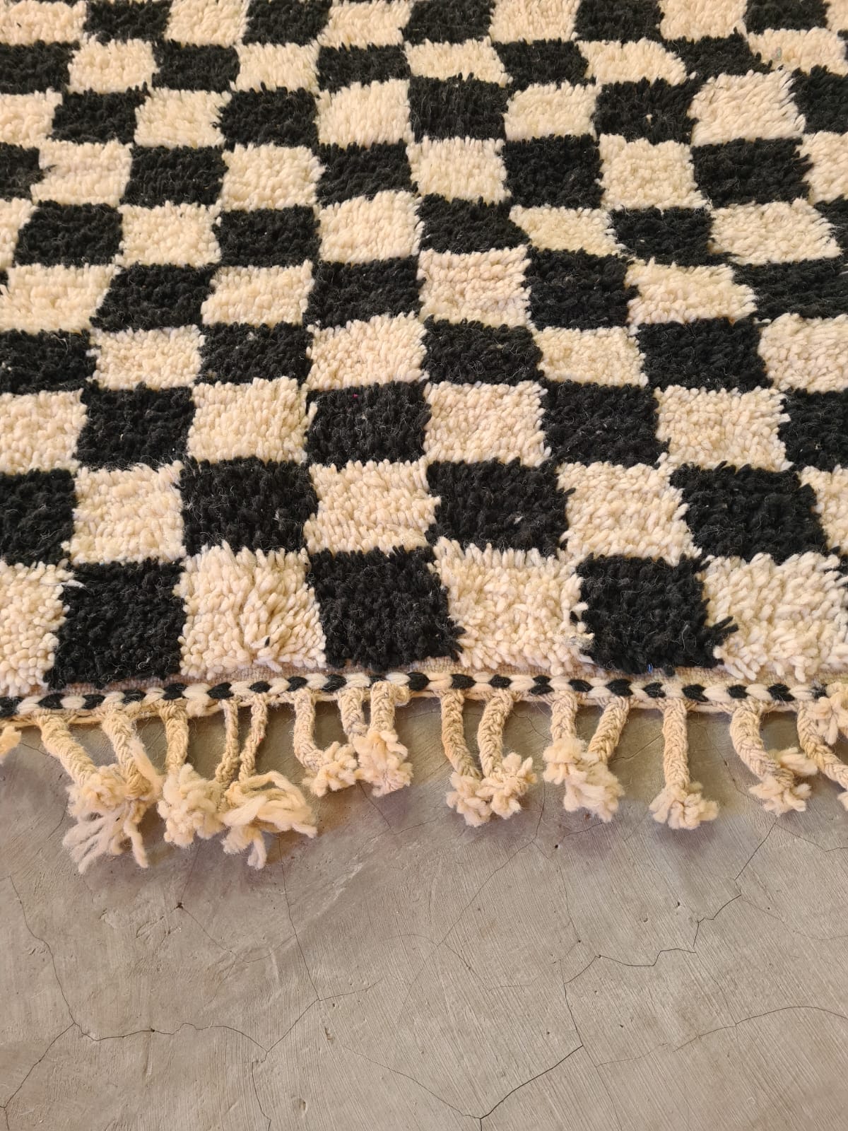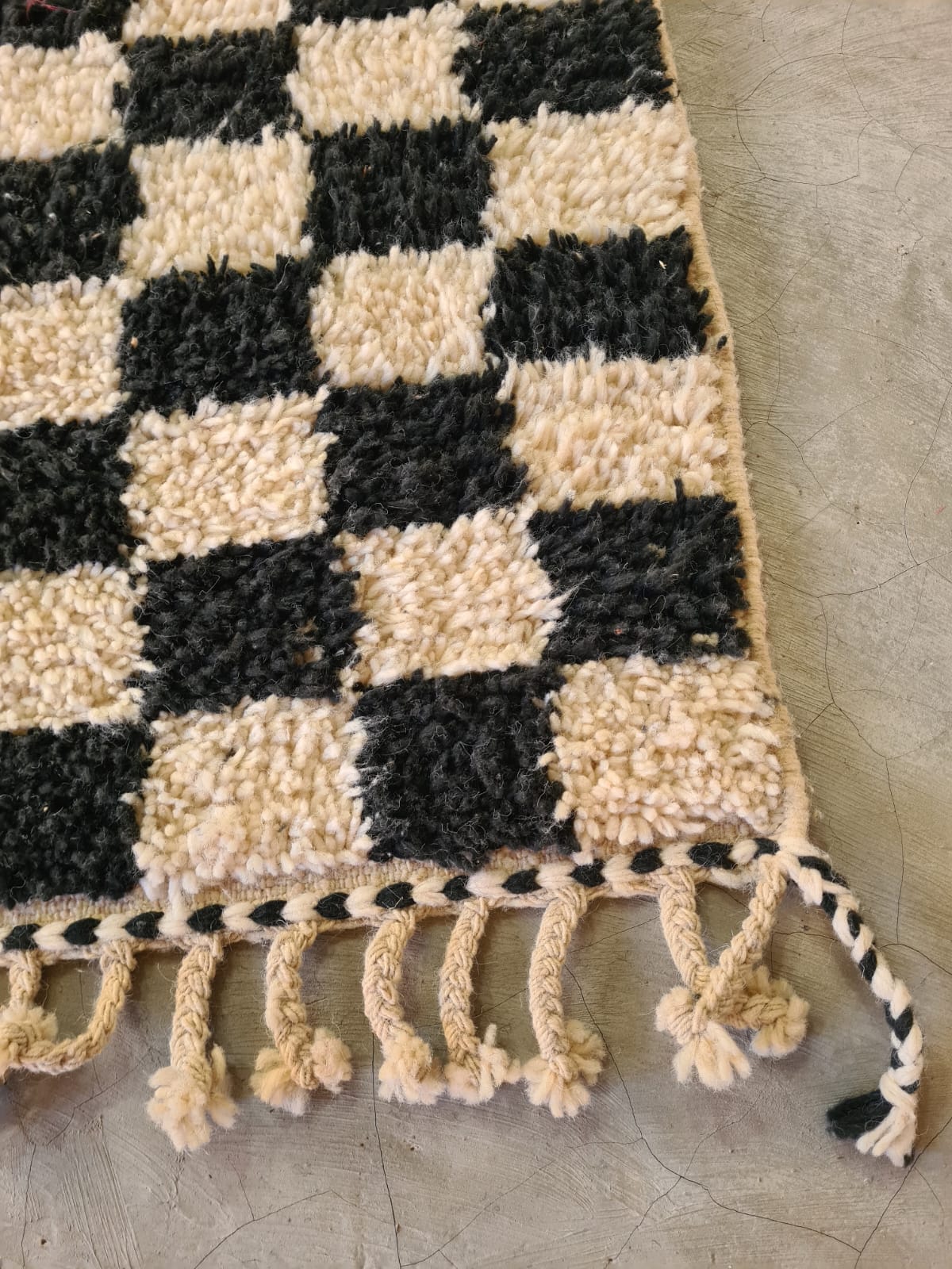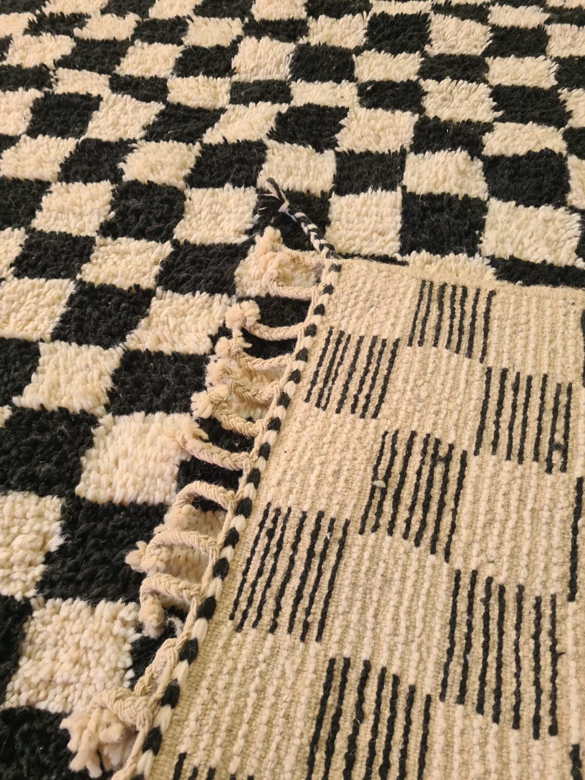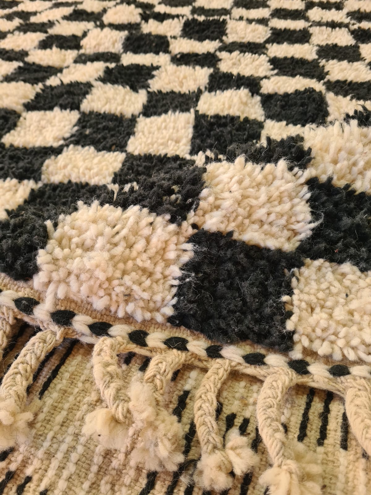 Stitched Balance – Beni Ourain Checkerboard Rug in Black & Ivory