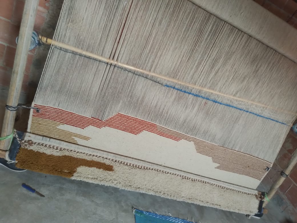 Beni Mrirt typology — painterly color fields on an undyed ground, plush and architectural.