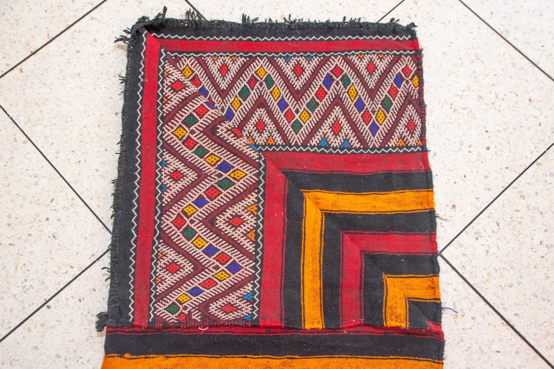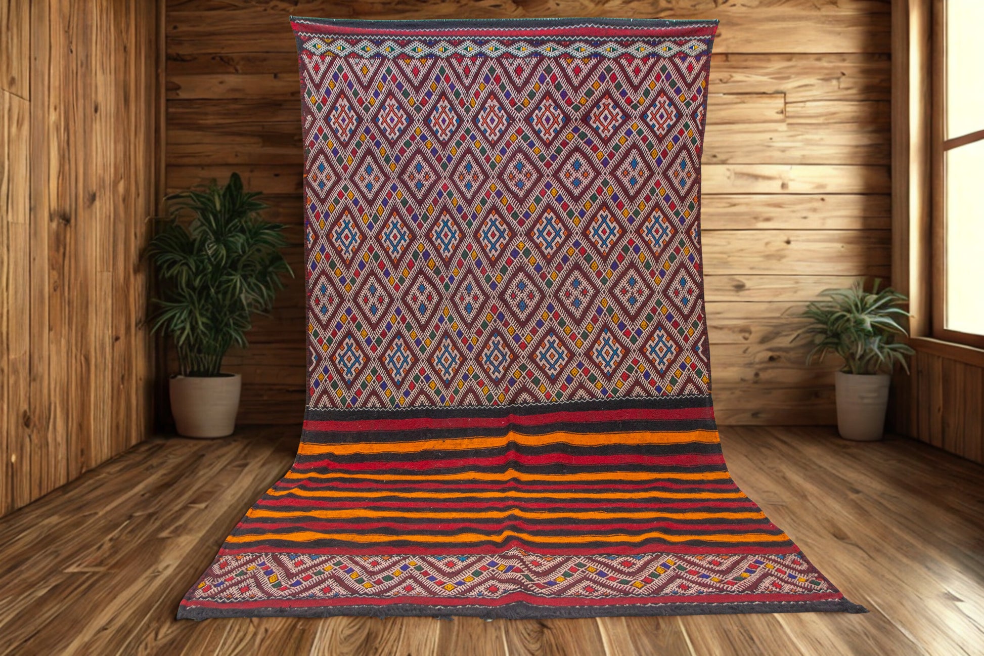 Each diamond houses ancestral glyphs of protection, while the horizontal striped base grounds the piece with the warmth of earth and fire, a nod to the hearth-centered life of the Aït Zayane people.