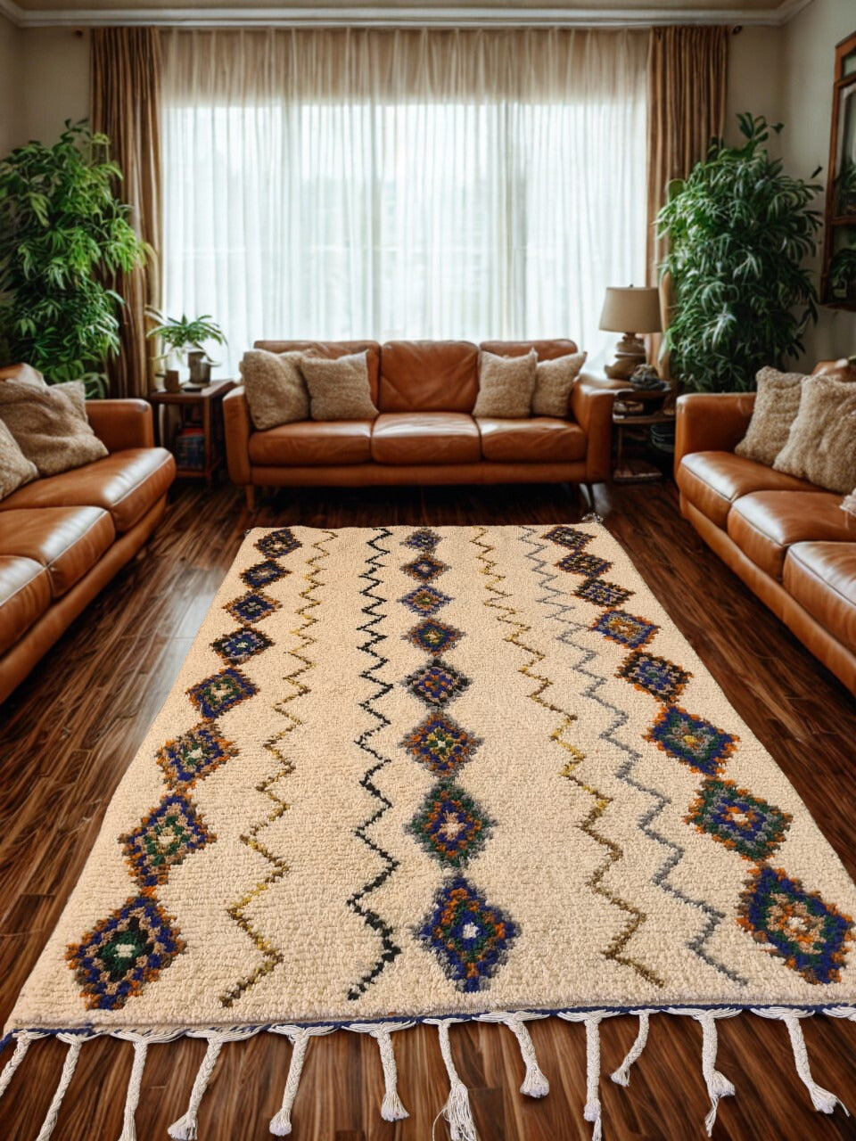 Ideal for anchoring a space with both brightness and meaning, this Azilal piece offers a joyful yet reverent energy—perfect for those who seek both cultural depth and visual vitality.