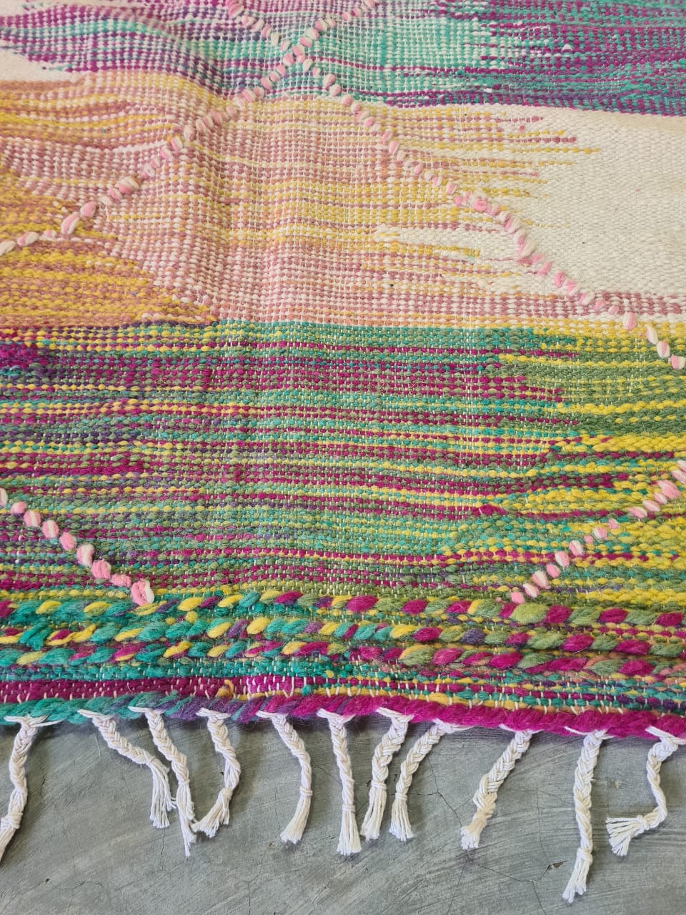 Ideal for spaces that seek warmth and modern energy, Threadscapes is less a kilim, more a visual poem woven in fiber—lightweight, joyful, and emotionally resonant.