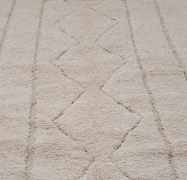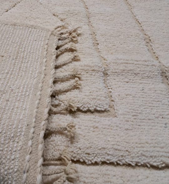 A serene Marmoucha masterpiece distinguished by its ivory-on-ivory relief work — a technique in which the motif is sculpted rather than contrasted by colour. This restrained aesthetic is a hallmark of the higher-altitude Marmoucha weaving tradition, where artisans favour texture, shadow, and depth over pigment.