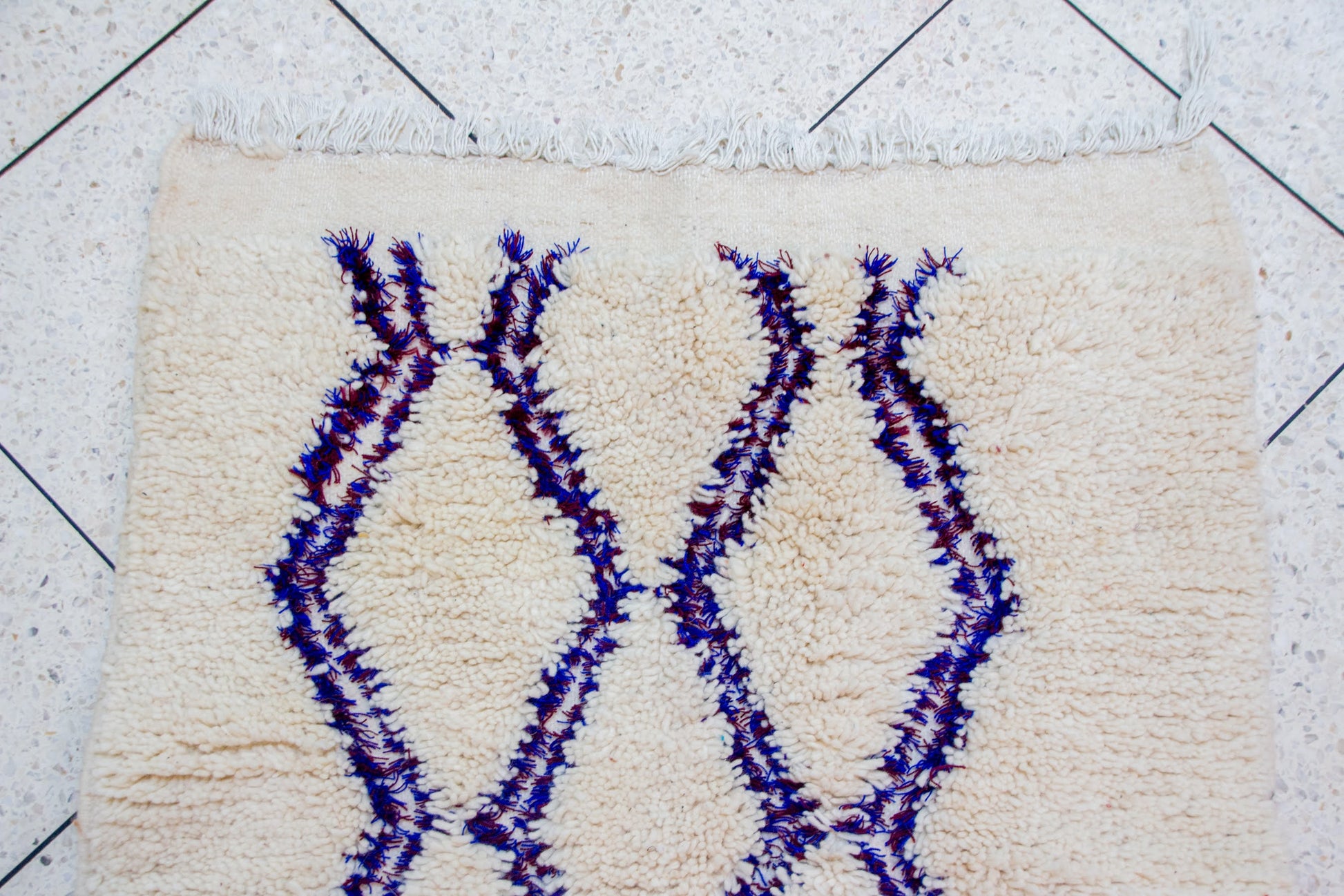 A refined Marmoucha small rug distinguished by its deep violet lattice — a rare chromatic signature within the Marmoucha lineage. The diamond framework is rendered in a freehand improvisational style, its jagged edges evoking the rugged topography of the Middle Atlas where this weaving tradition originates.