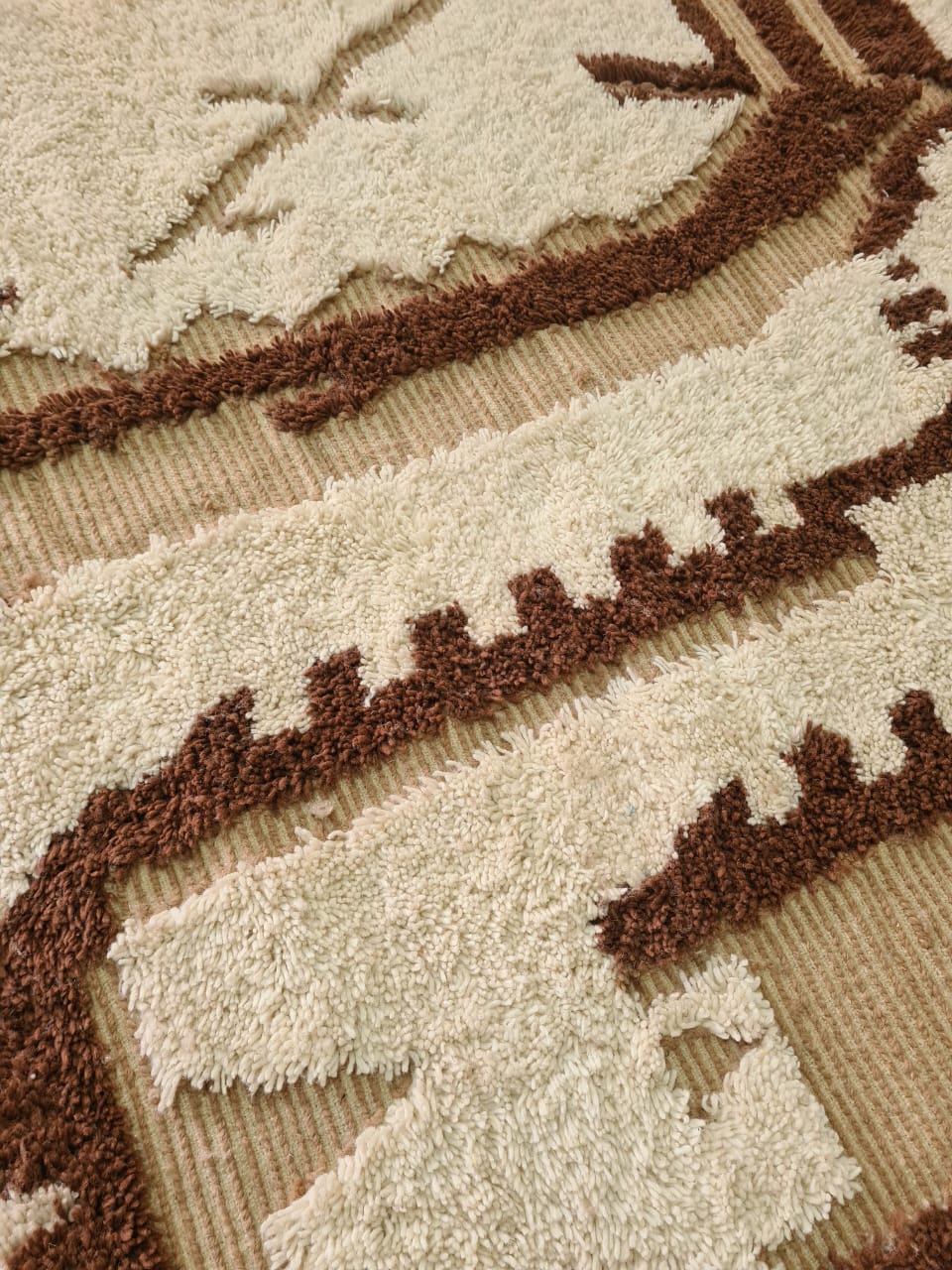 Woven in the heart of the Central Middle Atlas, the Mountains and Rivers rug is a sculptural landscape in earth-toned wool. This Beni Mrirt piece echoes the topographic memory of Morocco’s terrain, where mountain silhouettes meet river valleys in rhythmic harmony.
