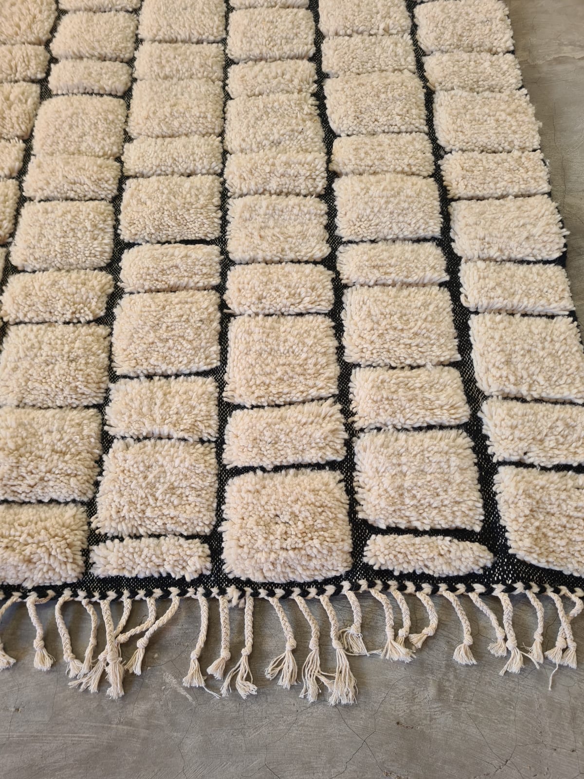 Paved Black Rivers Nomadic Grids – Sculpted Beni Ourain Rug in Raised Wool Relief