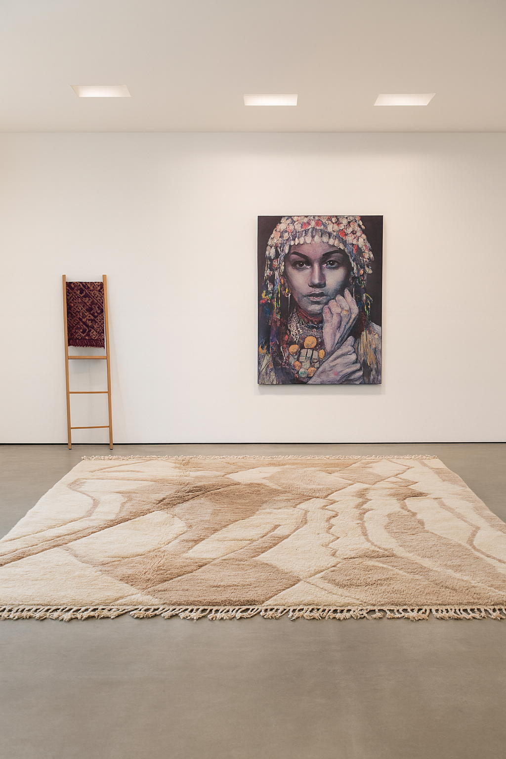 This rug is an original sample from our weaving workshop. Every stitch is handcrafted using undyed or plant-dyed wool sourced from the Atlas. The motifs, symbols, and size can all be reimagined to reflect your own vision.