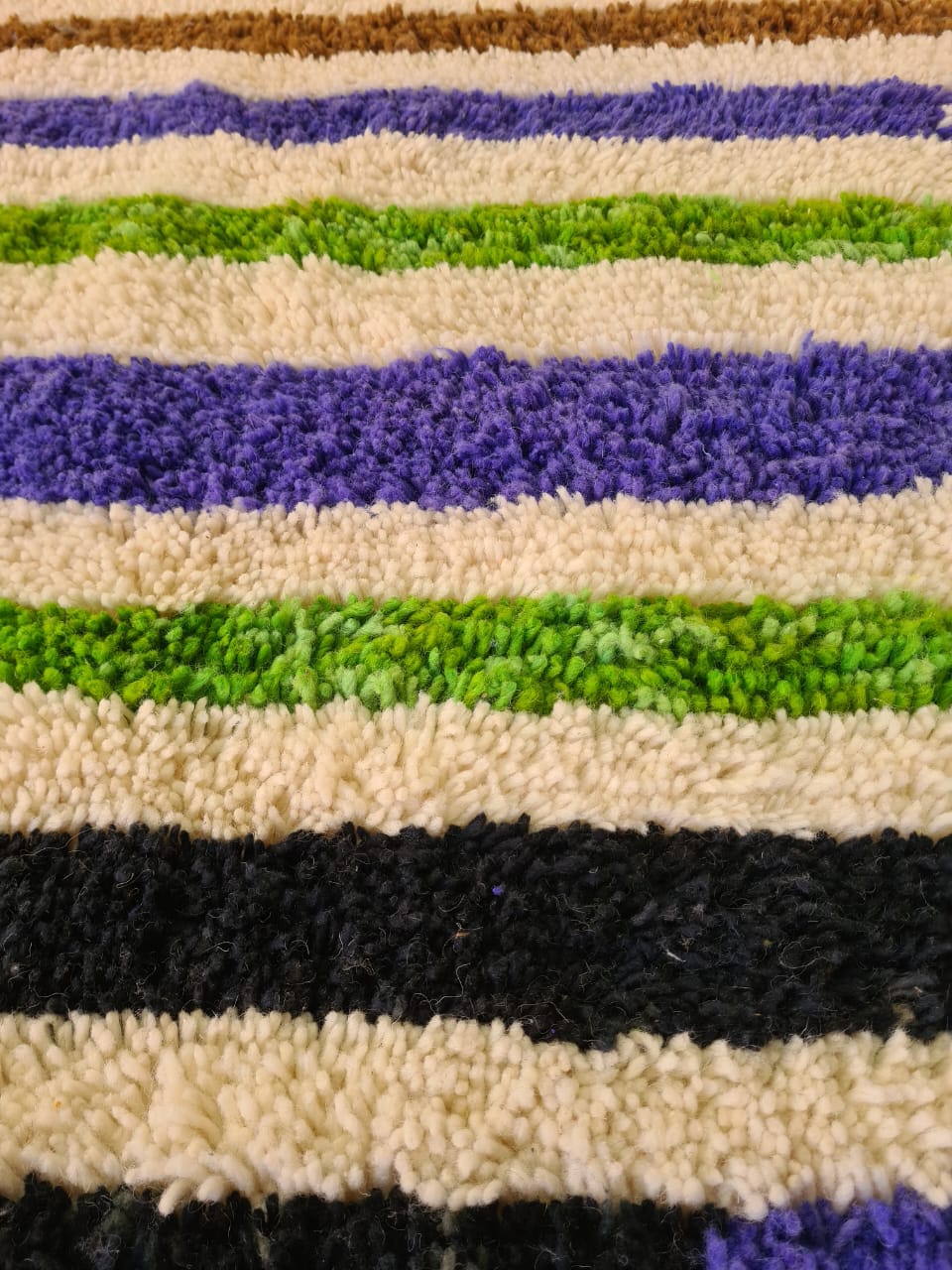 Rhythms of the Atlas – Striped Boujaad Rug in Violet, Green & Black