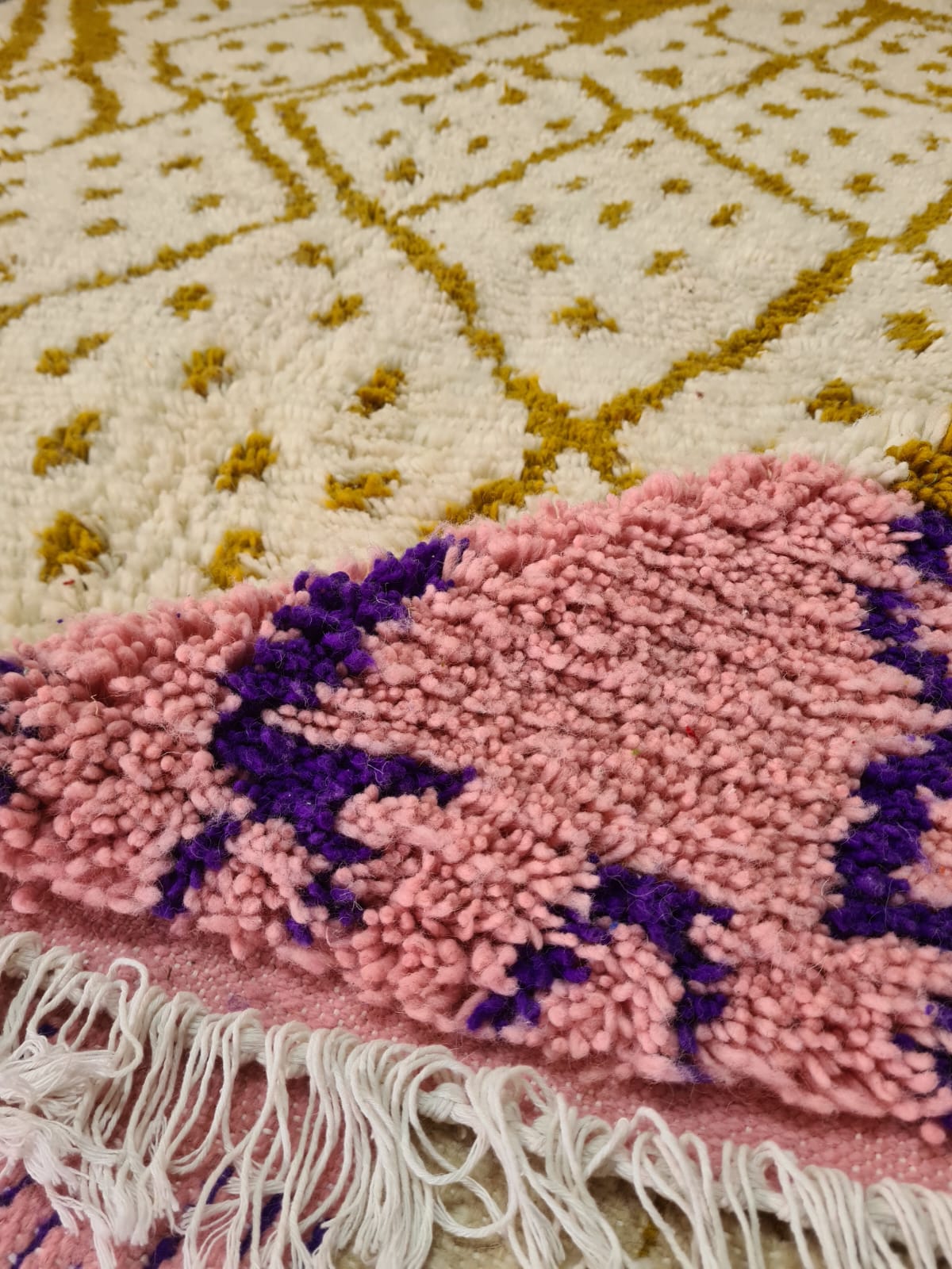 - Dense Wool Texture: Masterfully knotted Beni Mrirt wool in luminous tones